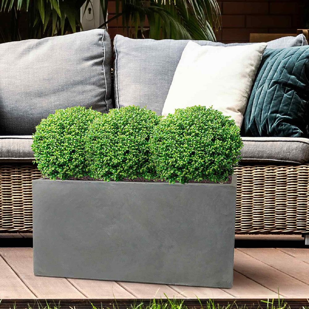 Transform your green space with our Grey Light Concrete Fibrestone Trough Outdoor Plant Pot 30cm. With a 37L capacity, it provides ample space for various houseplants while adding a touch of elegance to your house entrance or garden. Crafted from fibrestone using state-of-the-art finishing techniques, this sleek and stylish planter combines the look and solid feel of solid stone or concrete with the lightweight, cost-effective benefits of fibreglass. Its durable construction ensures it can withstand the most demanding environments. Designed with pre-drilled drainage holes to prevent water retention, this planter promotes healthy plant growth. This planter is frost-proof, ensuring it remains robust and reliable all year round. Its simple elegance complements a wide range of home and garden décor, making it perfect for gift for any gardening enthusiast. Size: H30 x W19 x L65cm.