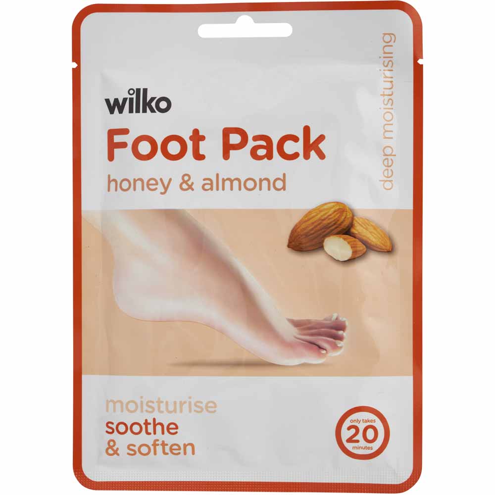 This deeply moisturising Honey and Almond Foot Pack has been enriched with vitamin E to moisturise the skin, helping to soothe and soften dry, rough and cracked heels. Includes one treatment for both feet that works in just 20 minutes. Not suitable for vegans. Contains: Aqua, Petrolatum, Squaline, Glycerine, Glyceryl Stearate, Stearic Acid, Dimethiconol/Silica Crosspolymer, Cetearyl Glucoside, Hydrolysed Sweet Almond Protein, Tocopherol Acetate, Honey Extract, Ethylhexyl Isopalmitate, Hydrogenated Olive Oil, Triethanolamine, Carbomer, Phenoxyethanol, Allantoin, Sodium Hyaluranate, Disodium EDTA, Parfum