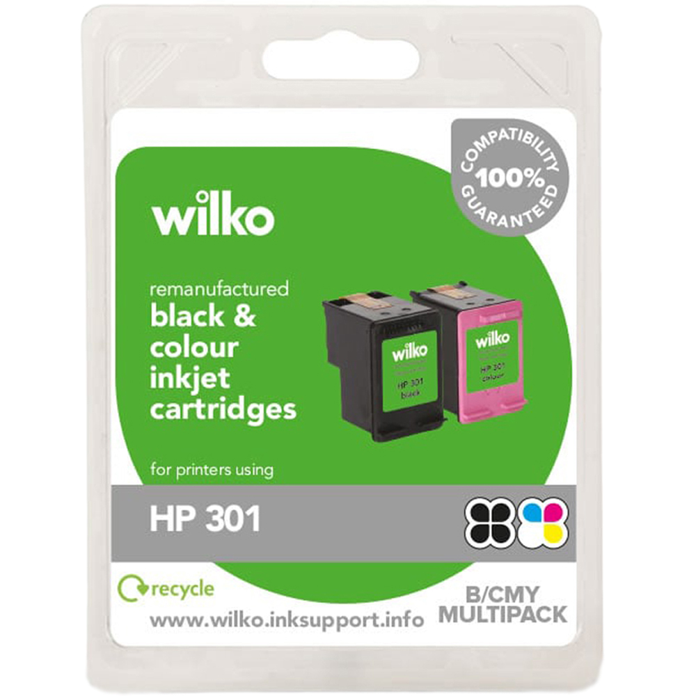 Enjoy high quality prints with the wilko Remanufactured HP 301 Black and Colour Inkjet Cartridge Twin Pack. The pack contains 1 x black and 1 x colour cartridge which are compatible with Hewlett Packard 301.Here's the full list of printers that this cartridge will work with:Deskjet 1000 series, 1010, 1050/a series, 1512, 1514, 2050a series, 2050/s, 2054, 2510, 2512, 2514, 2540, 2542, 2543, 2544, 2547, 2548, 2549, 3000 series, 3050/a series, 3052a series, 3054a series. 3055a, 3057a, 3059a, Envy e-AIO 4500, 4502, 4503, 4504, 4507, 4508, 5530, 5532, 5534, Officejet 2620, 2622, 2624, Officejet e-AIO 4632, 4634, 4636. Before purchasing, check that this cartridge is compatible with your printer. Don?t forget to recycle your old inkjet cartridge! When you order a new wilko cartridge, we?ll send you a freepost envelope ? pop in your old cartridge and send it off to The Recycling Factory. They?ll make a donation of £1 to wilko?s local charities for every inkjet cartridge successfully recycled. Please see www.therecyclingfactory.com for a full list of recyclable items. If you need any support when installing your cartridge, we're here to help. Call our dedicated free phone helpline on 0800 091 0083, lines open Monday - Friday 9am-5pm. You can also visit the wilko Ink Support website www.wilko.inksupport.info for more information.