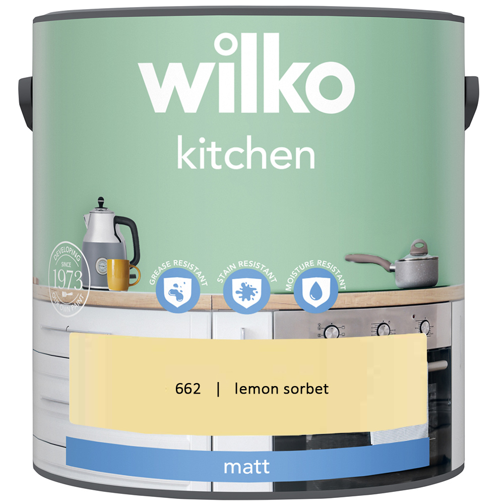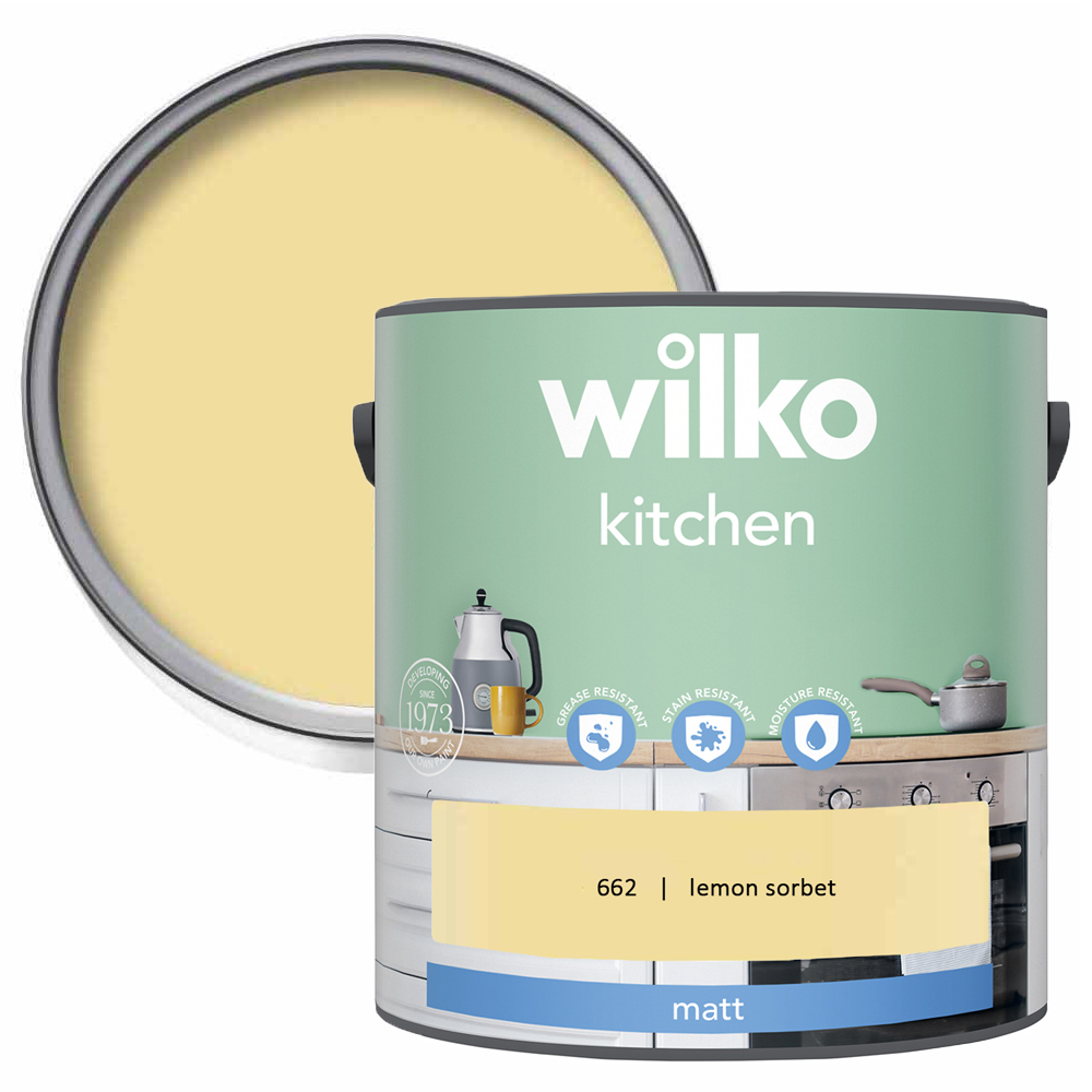 Wilko Kitchen Matt Emulsion Paint 2.5L is perfect for kitchens, where everyday grease and moisture can be a problem. This durable paint has been specially formulated to be washable and easy to clean. The best results always start with the best preparation. Clean walls with Wilko sugar soap. Ensure you have a smooth surface and the right rollers and brushes for the job. The contents of this can will cover approximately 30 square metres* which after 2 coats, is about the same width as 6 range cookers. (*Approximate coverage depends on the surface of your walls, see the back of can for more details). Colours viewed on screen may not show the same on your walls. To make sure this colour's right for you, we recommend ordering a tester pot or popping into store to check first.