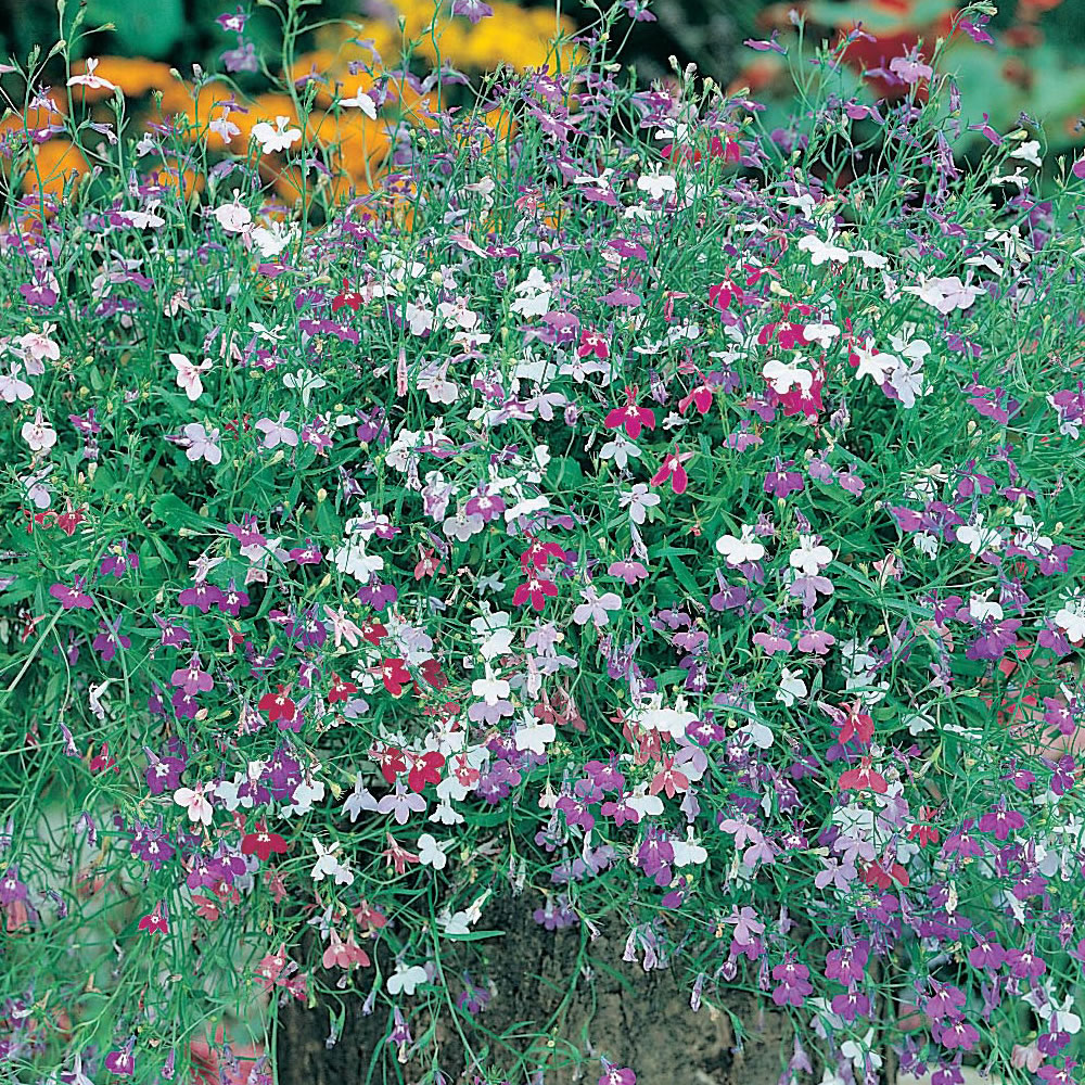 Our Lobelia Colour Cascade Mixed Seeds are an essential ingredient for hanging baskets. This vigorous trailing mixture of purple and white flowers will cascade from any type of container throughout the summer. Sow indoors from February to April, ready to flower from June to October. The average pack contains 2500 seeds. Height: 30cm.