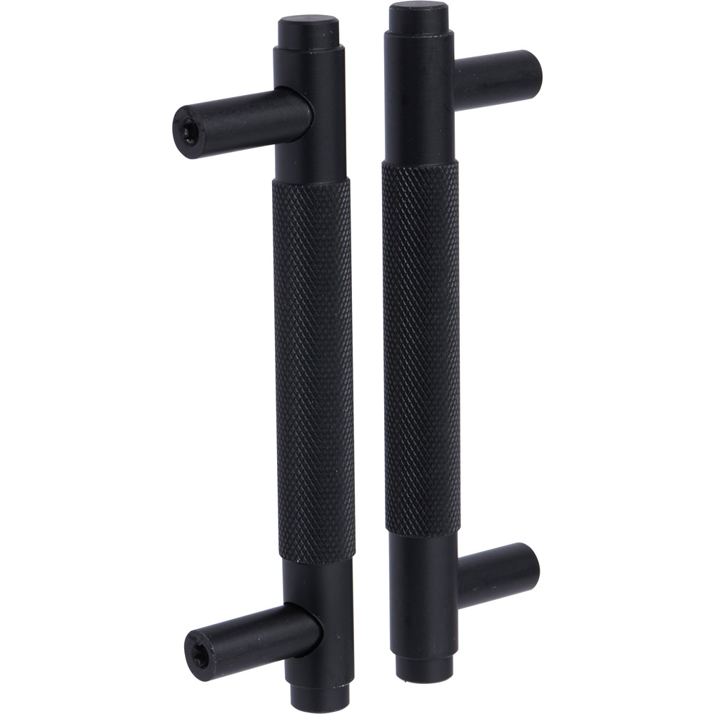 Give your furniture a new look with our Cabinet T-bar handles. These black finish T-bar handles will bring a modern touch to a range of furniture around the home. Our cabinet door handles are replacement handles for kitchen cabinets, wardrobes and furniture around the home. Fixings included. It has 96mm hole spacing. The pack contains two T bars. Care and use: Wipe clean with a soft, damp cloth. Do not use harsh or abrasive cleansers/scourers.