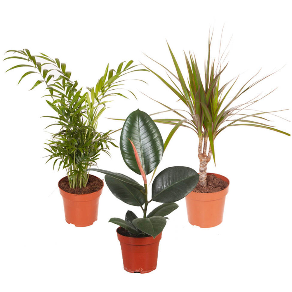 Ideal for beginners who want easy-to-grow, low-maintenance plants, this collection is a great way to transform any living space into a greener and more pleasant place. Undemanding, robust and easy to care for, these indoor plants are tolerant of a range of conditions, making them a cost-effective way to fill your home with greenery - ideal for both beginner and experienced plant lovers alike. Three mixed foliage plants are supplied in 12cm pots, which could include (although not guaranteed) such beauties as Chaemaedorea elegans - an award-winning palm with light green, feathery fronds. Grows to 1.5m. Dracaena marginata - the Dragon tree, is an evergreen shrub with a crown of long, sword-shaped, dark green leaves, finely edged with reddish-brown. Grows to 2.5m. Fiscus elastic - the well-known rubber plant with large, glossy leaves. Grows to 2.5m. Supplied as a collection of 3 established house plants of differing varieties in 12cm pots. Please note: decorative pots shown in the images are not included. As with all houseplants, keep away from children and pets, and take care when handling.