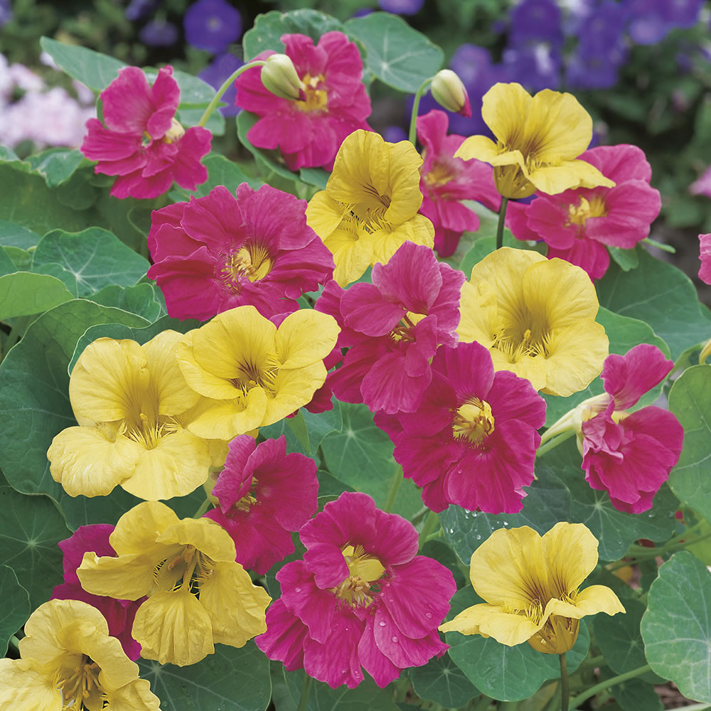 Our Nasturtium Summer Carousel Seeds produce a stunning mixture of vibrant colours to create an eye-catching display throughout the summer. Nasturtium thrives in poorer soils and is great for large patio containers or edging mixed borders. Sow indoors from February to March or outdoors from April to June, ready to flower from June to October. The average pack contains 25 seeds. Height 30cm.