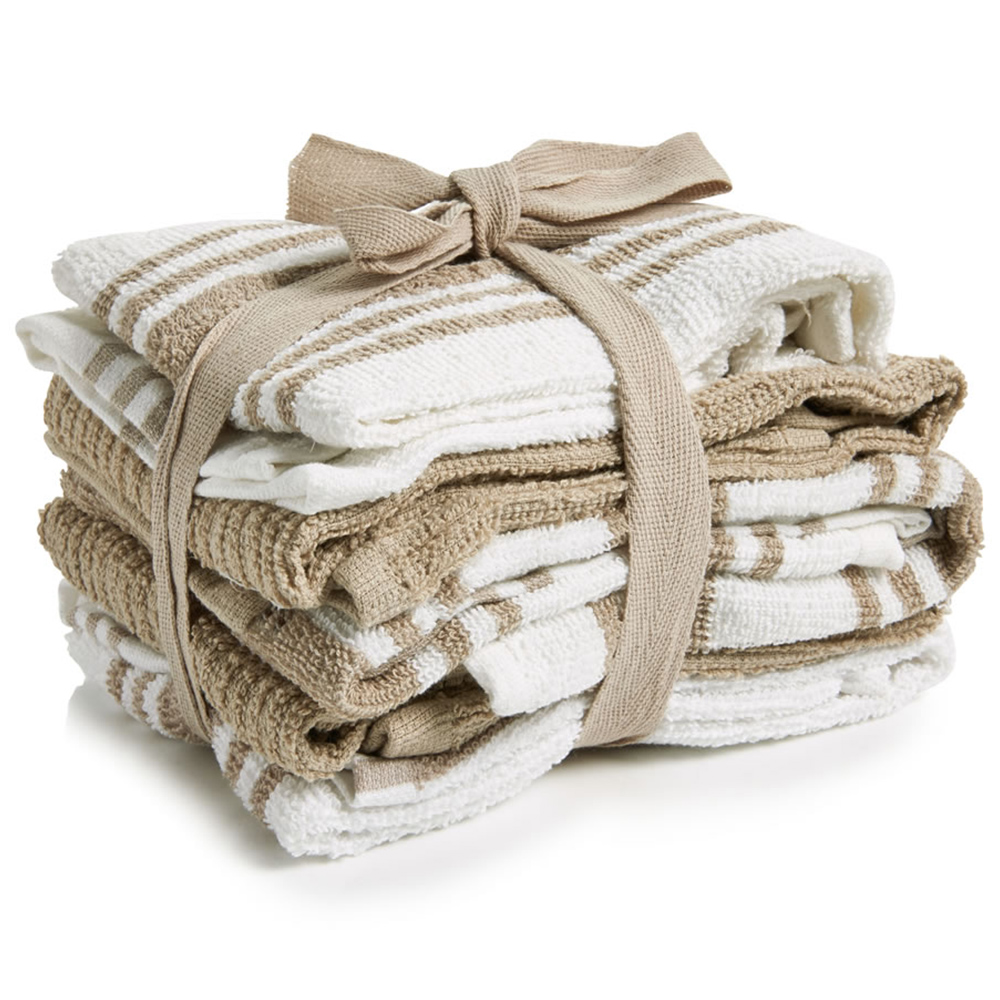 Bring a beautiful touch to your kitchen with this lovely set of 5 tea towels. With neutral colours and three unique designs, they're perfect for adding a touch of country chic to your kitchen. And, made with 100% cotton they're incredibly hardwearing too.