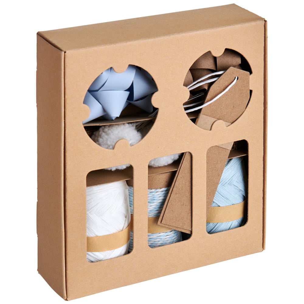 Make gift wrapping a breeze with our Nordic Gift Wrap Set. This set consists of paper bows, ribbons, pom poms, twine, paper tags and more to make your gift-wrapping sessions effortless and interesting. Featuring blue accents, it makes a decent option for all individuals. Directions for use: (Bow) - Step 1: Peel the backing paper off the sticker. Step 2: Tap the bow onto the gift. Step 3: Press down on the sticker for a few seconds to hold it in place.