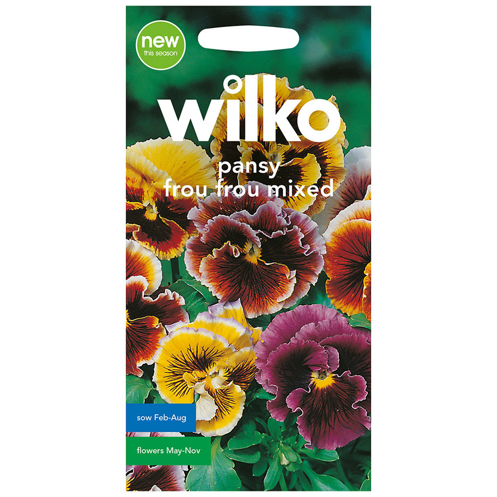 Add charm to your garden with our Pansy Frou Frou Mixed Seeds that produce beautiful, extra showy, and long flowering pansies. With ruffled petals in a diverse mix of colours, these beautiful flowers are sure to add magnificence to your bedding displays and patio containers. When to plant: Feb-Aug. Flowering time: May-Nov. Indoor sowing: Sow thinly in trays of seed compost, and cover with a fine layer of compost. Firm gently, and keep moist and warm. Outdoor sowing: Sow thinly in a prepared seed bed in rows 23cm apart. Cover with 1.5cm fine soil, firm gently, and keep moist. When large enough, thin to 10cm apart. Transplant 15cm apart in flowering position from September to October. Flowers May to October the following year. TIP: Remove dead flower heads to prolong flowering. Hardy Perennial. Average content: 50 seeds.