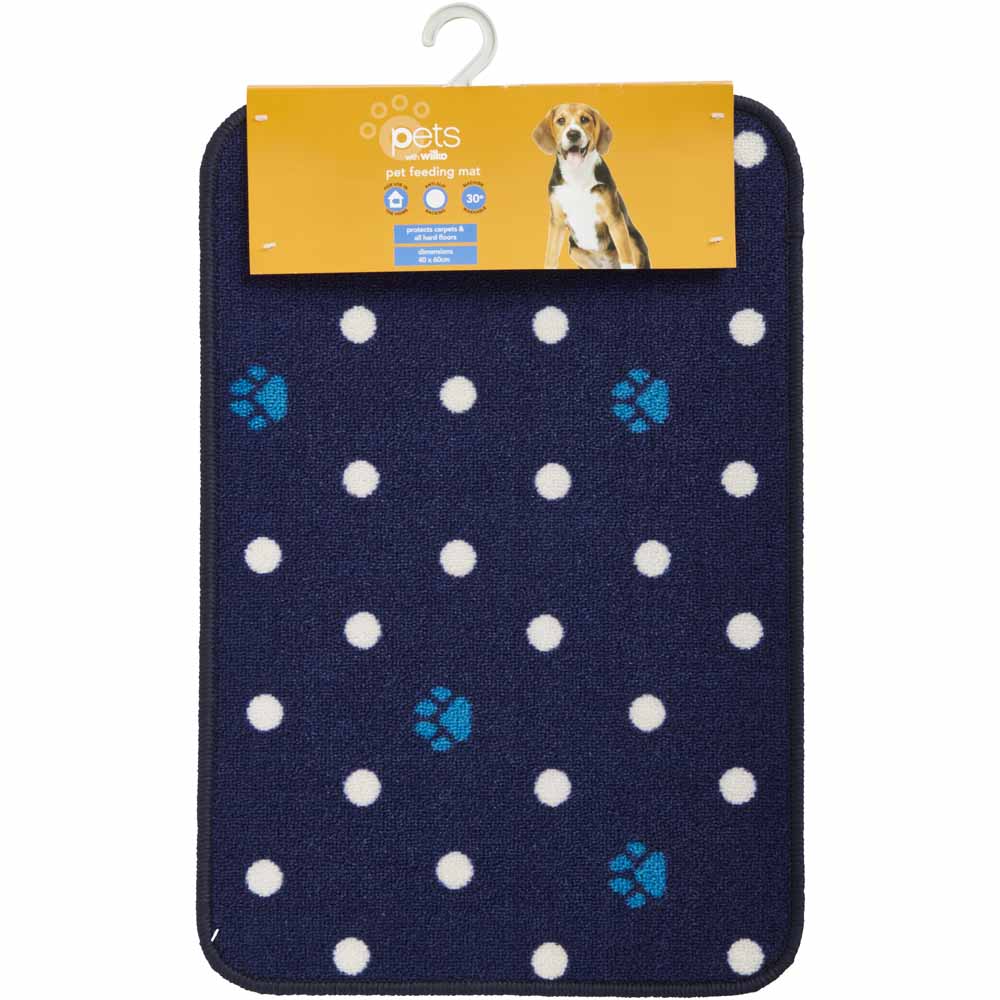 Keep your floors clean and catch accidental pet food or water spills with our Pet Feeding Mat. The pet mat comes with a latex back to prevent movement. Machine washable - Simply pop in the wash for an easy clean! Size: 40 x 60cm.
