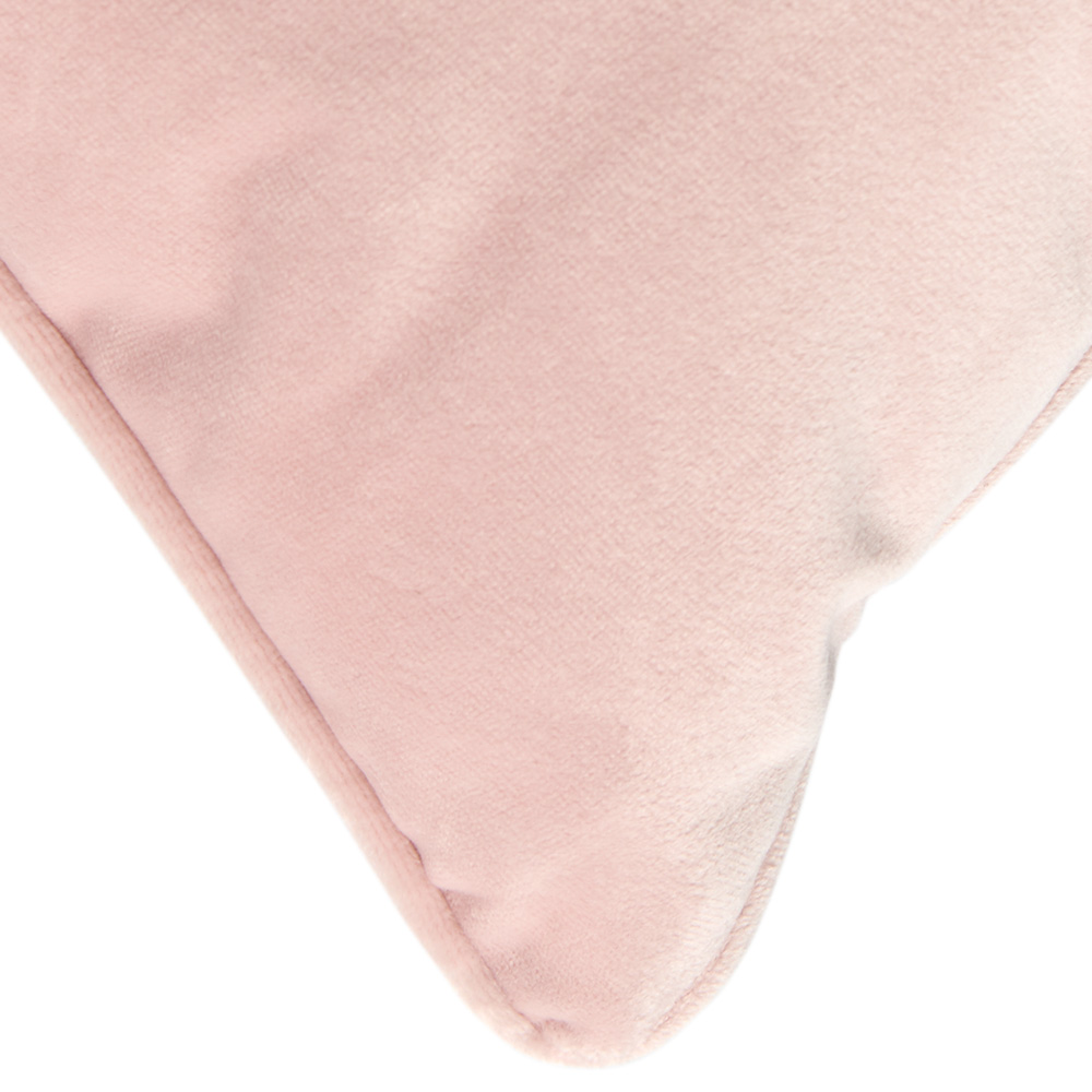 Effortlessly style up your sofa or bed with the help of our pink-coloured velour cushion. Size: 55 x 55cm. Machine wash at 30 degrees celsius. Do not bleach. Tumble dry. Iron medium on reverse. Do not dry clean Materials: Cover: 100% polyester. Inner Cover: 100% polypropylene. Filling: 100% polyester. Warning: Keep away from fire.
