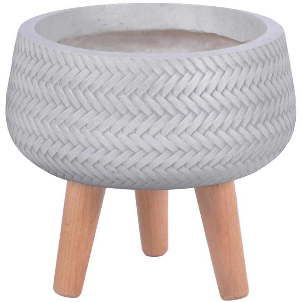 wilko Plaited Style White Indoor Bowl Plant Pot with Legs 23cm