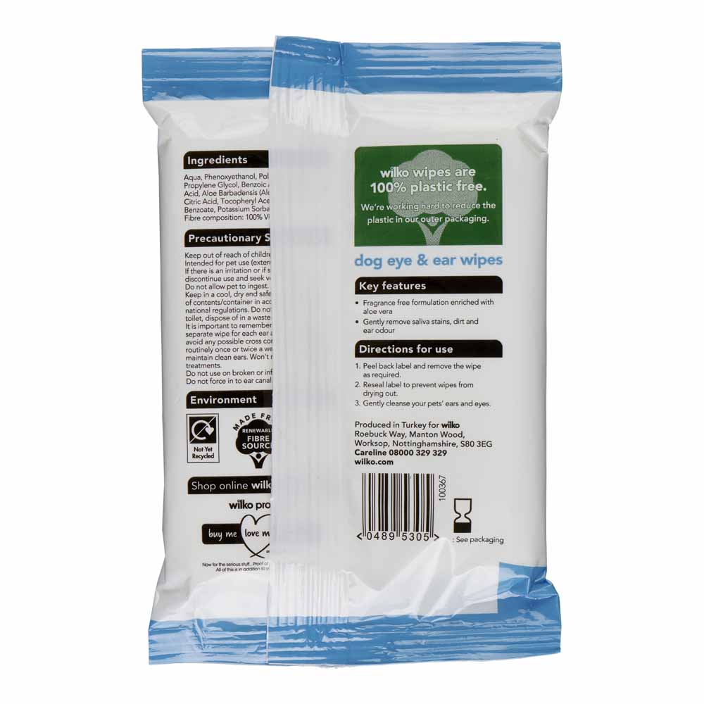 Our dog eye and ear wipes are now plastic-free! Care for your pet whilst caring for the environment at the same time with this pack of 25 wipes. They'll remove ear odour, dirt and saliva stains from your dog. The wipes are fragrance free with a gentle and soothing formula that's enriched with aloe vera. Each wipe is made from viscose which is a renewable fibre source. And it's not just these wipes that are plastic-free. All of our new
