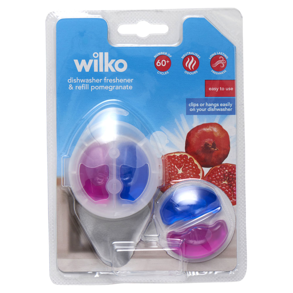 Easy to use, our dishwasher freshener is ideal for neutralising odours and keeping your dishwasher smelling fresher for longer. Designed to easily clip or hang on your dishwasher, its odour neutralising technology deodorises your machine with a fresh pomegranate fragrance that lasts for up to 60 washes. After 60 washes simply remove the old chamber and replace it with the refill included. Suitable for all domestic dishwashers. Size: 2 x 6ml. Directions for use: First use- Carefully remove the protective film by pulling the aluminium strip on the capsule inside the diffuser. Hang the freshener in the front part of the upper rack of your dishwasher, away from the rotating arms. Refill- Carefully remove the aluminium protective film on the back of the refill. Be careful not to damage the membrane. Open the plastic diffuser and insert the refill with the flat side towards the grid. Close the container (click). Hang the freshener in the dishwasher.