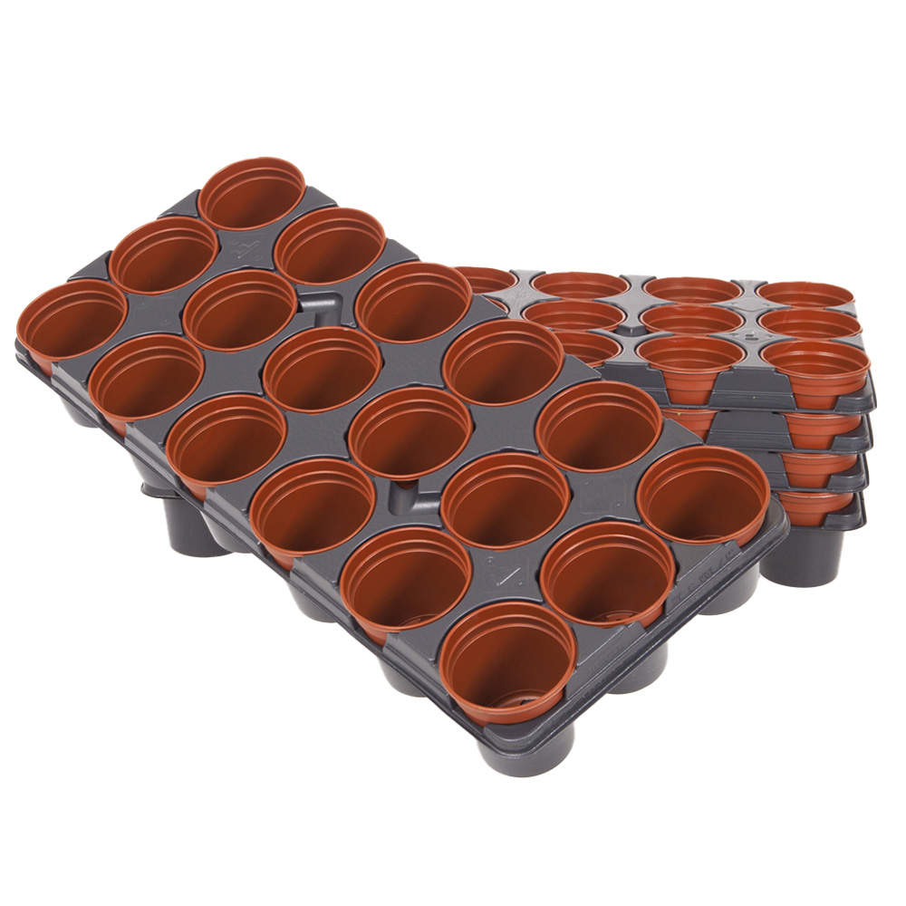 Grow happiness indoors with the YouGarden Professional Shuttle Trays. Made from durable, frost-proof and high-impact plastic, the pots and trays are easy to carry around and can be used again by simply washing them after every use. They are perfect for potting up and growing on young plants, seedlings, or even germinating seeds from scratch. Trays and pots both have drainage holes. Supplied as five shuttle trays, W30 x L53cm long, each containing 18 x 9cm diameter pots (90 pots in total). Please note the colour of pots may vary.