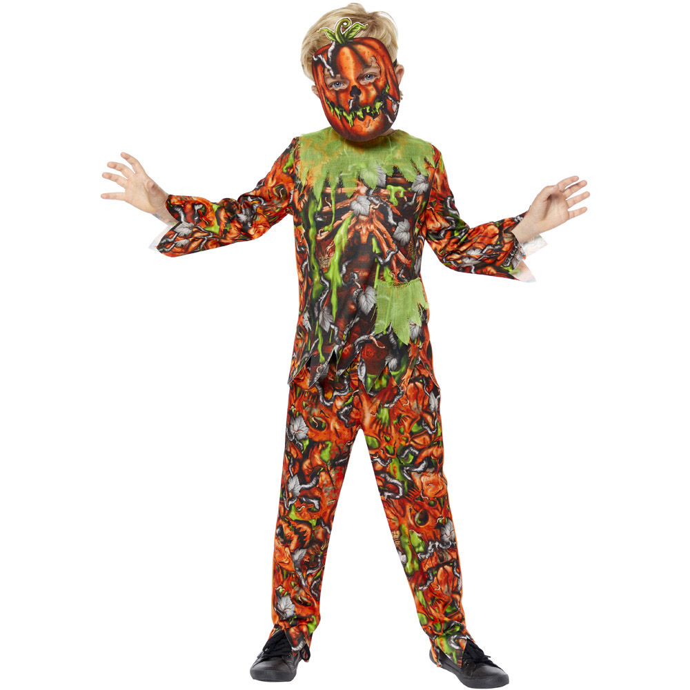 Get ready to haunt the neighbourhood with our Pumpkin Reaper Costume. This costume includes a top, trousers, and a mask. Made with 100% polyester, this costume is suitable for children between seven to eight years and up to 128cm tall. Care and use: Materials: 100% polyester, exclusive of trims. Sponge clean only. Do not bleach. Do not iron. Do not tumble dry. Do not dry clean.