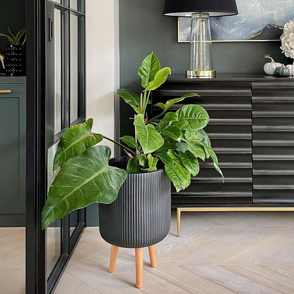 Elevate your indoors with lively plants and stylish plant pots with our wilko Ribbed Grey Indoor Cylinder Plant Pot with Legs 46cm. It is a durable and stylish choice for indoor spaces. Crafted from a blend of Fibre and stone, it features a handcrafted stony matt grey finish. Please note that it does not come with a drainage hole. Made with the use of recycled plastic Fibres makes it an eco-friendly option. Dimensions: H46 x D30.5cm.