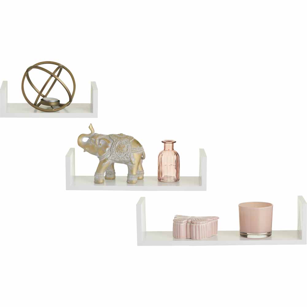 Create a perfect storage space or a stylish feature for your room with our Set of 3 MDF Shelves White. With a simple and sturdy design to display your favourite books, photos and home accessories, it comes in three different sizes to perfectly fit your home. MDF thickness: 1.2cm. Sizes approximately: 24.4 x1 2x 7.2CM, 35.2 x 12 x 8.7CM, 42.5 x 12 x 10.5CM. Care and Use: Wipe clean with a soft cloth and mild cleaner. Avoid harsh or abrasive cleaners and scourers as these may damage the finish.