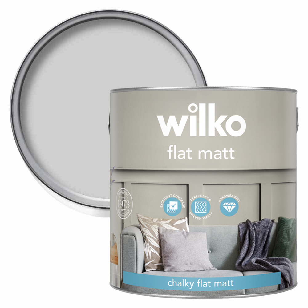 Wilko Flat Matt Emulsion Paint 2.5L has been specially developed to bring a timeless elegance to your home. It is a tough hard wearing flat matt finish, which delivers a modern chalky look to your walls. With virtually no light reflectivity, surface flaws and imperfections are hidden more easily. The contents of this can will cover approximately 20 square metres* which is about the same width as 4 small sofas. (*Approximate coverage depends on the surface of your walls, see the back of can for more details). Colours viewed on screen may not show the same on your walls. To make sure this colour's right for you, we recommend ordering a tester pot or popping into store to check first.