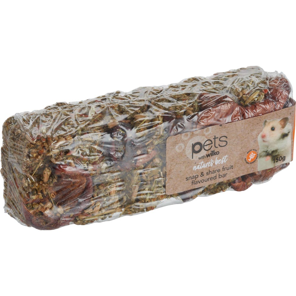 Rabbits, guinea pigs, hamsters, mice, rats and gerbils will love nibbling on this tasty Snap and Share Fruit Bar. This 100% natural treat is flavoured with tasty herbs and real fruit pieces with no added sugar.