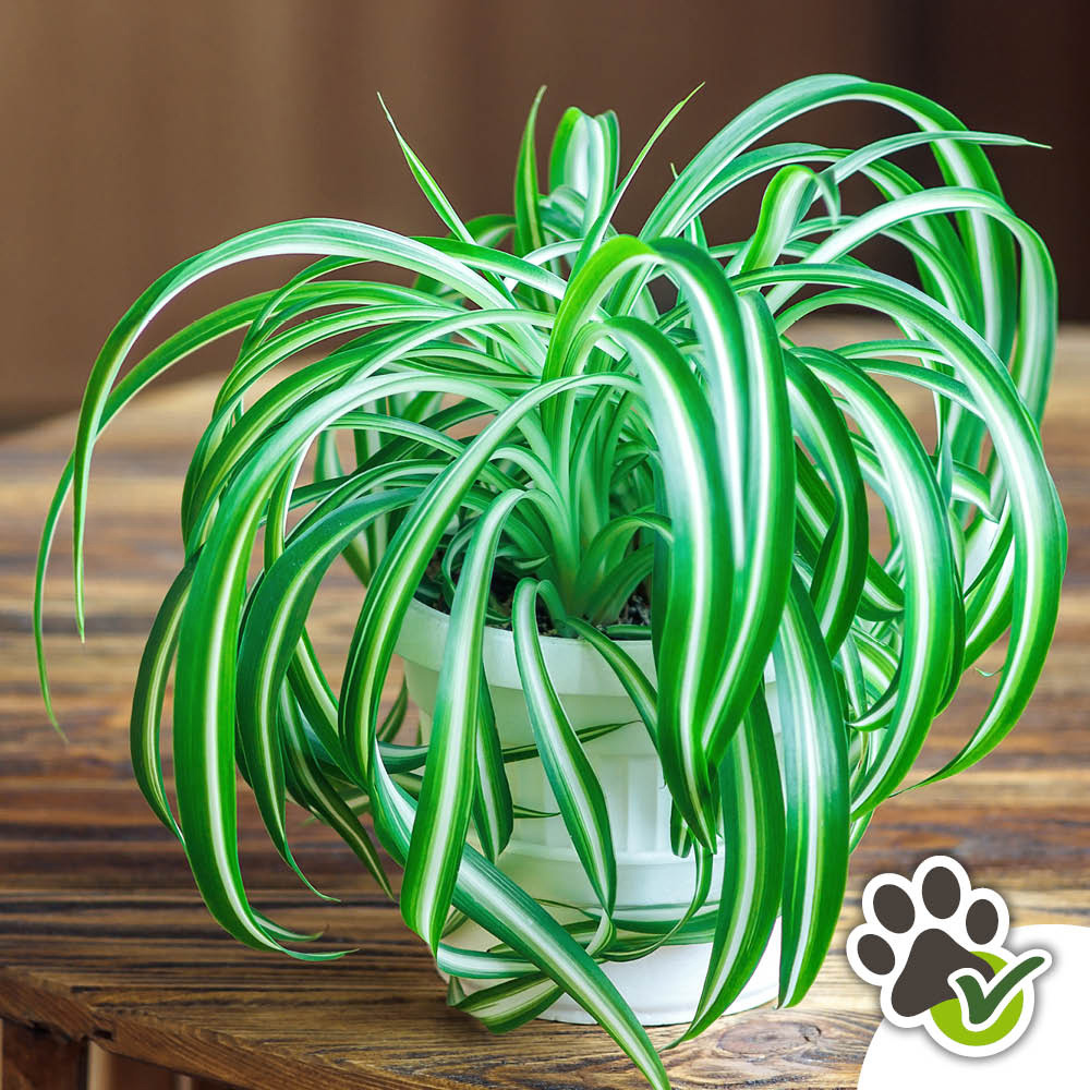 Unleash your inner gardener with our Spider Plant with Red Pot Cover 12cm. This classic Spider Plant is instantly recognisable and ideal for your home or office. It is low maintenance and easy to grow, making it popular among beginners. The long, arching, varicoloured foliage hangs down the sides of the pot, making it excellent for sitting on a shelf or in a hanging basket. Small white flowers and cascading stems appear, carrying baby plants as the spider plant grows. This houseplant clears the sir and removes toxins like benzene and formaldehyde. We have dressed up this houseplant by providing a glossy red pot cover. The nursery pot avoids the need for repotting and keeps the mess away. The pot measures 12cm, while the pot cover measures 13.5cm. The plant grows 50cm high and 50cm wide.