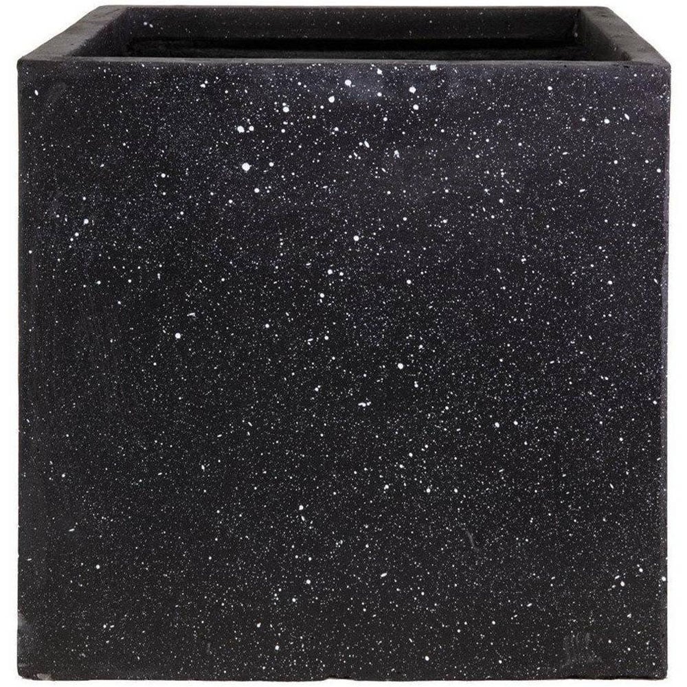 Transform your garden or entrance with our Square Box Black Terrazzo Light Concrete Planter 40cm. This modern outdoor planter, crafted from innovative fibrestone material offers the look of solid stone or concrete with the lightweight benefits of fibreglass. Built to withstand harsh conditions with its frost-proof construction, this sleek planter seamlessly blends into any setting while making a bold statement. Pre-drilled drainage holes ensure healthy plant growth by preventing water retention. Ideal for enhancing your decor, it's also a perfect gift for garden lovers. The planter measures 40cm in height, with a length and width of 40cm, and has a 66-litre capacity.