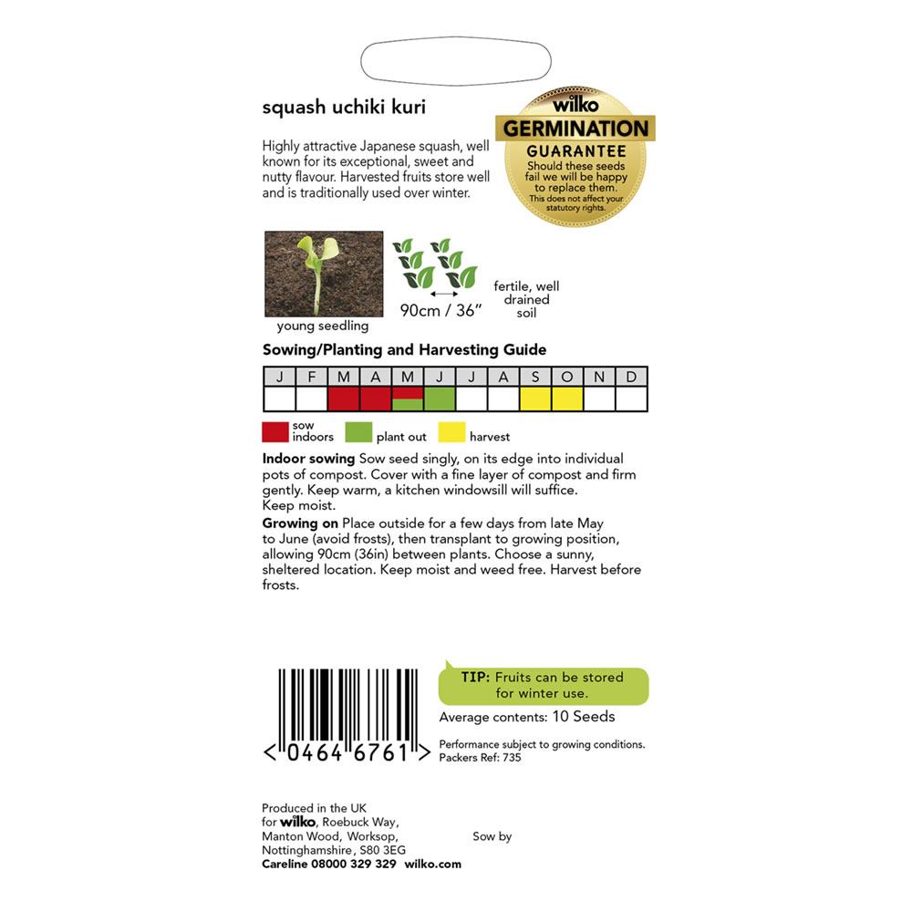 Grow fresh produce at home with our Squash Uchiki Kuri Seeds. It produces an attractive, highly regarded Japanese squash that's well known for its exceptional sweet and nutty flavour. The fruits also store well and are traditionally used over winter in a wide range of dishes. Sow indoors from March to May, ready to harvest from September to October. The average pack contains 10 seeds.