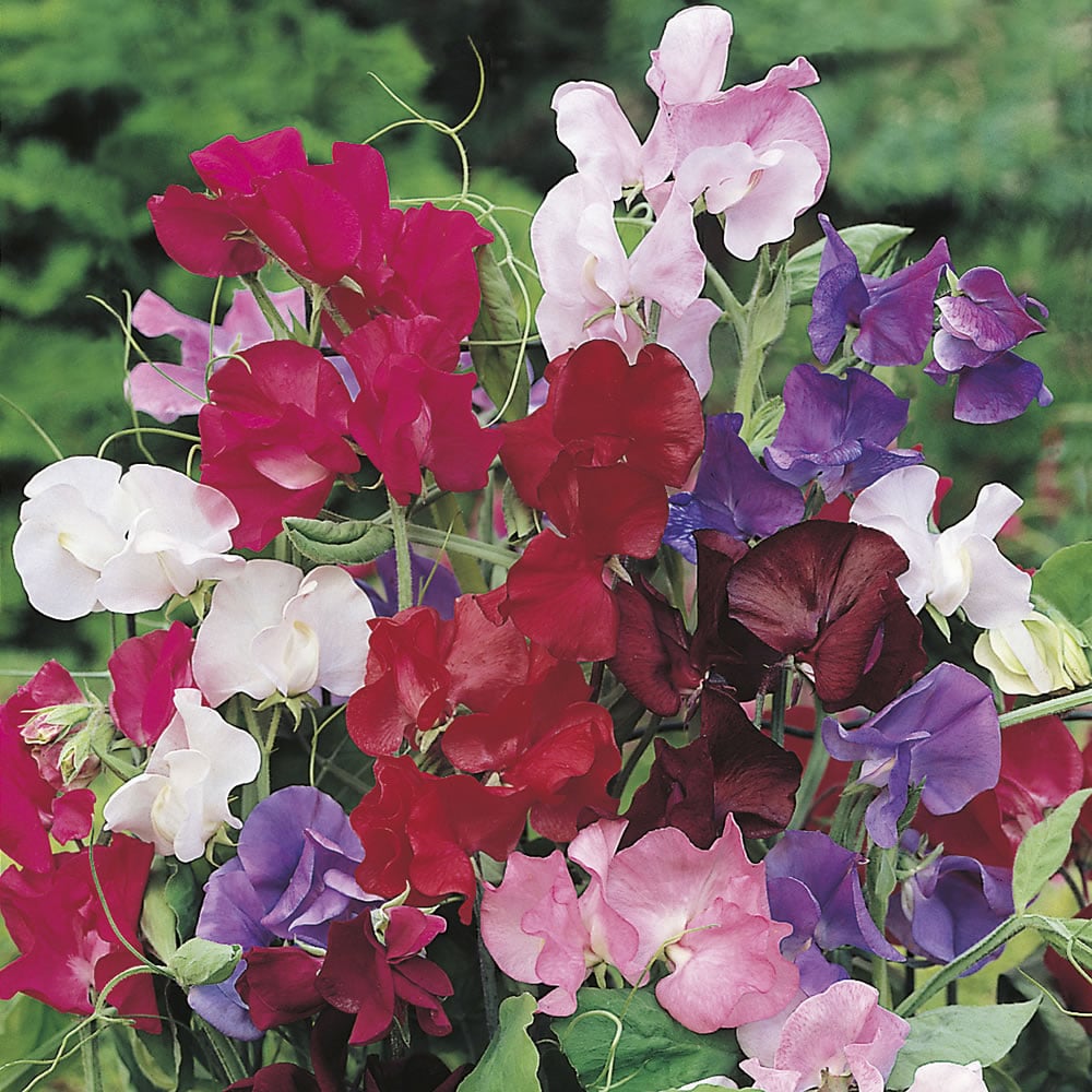 Our Sweet Pea Bouquet Mixed Seeds produce a fragrant mixture of large, brightly coloured blooms on long stems, perfect for cut flower displays. Ideal for growing over trellis, fences or a wigwam of canes. A hardy annual. Sow indoors from January to March and September to October or outdoors from April to May, ready to flower from May to October. The average pack contains 25 seeds. Height: 180cm.