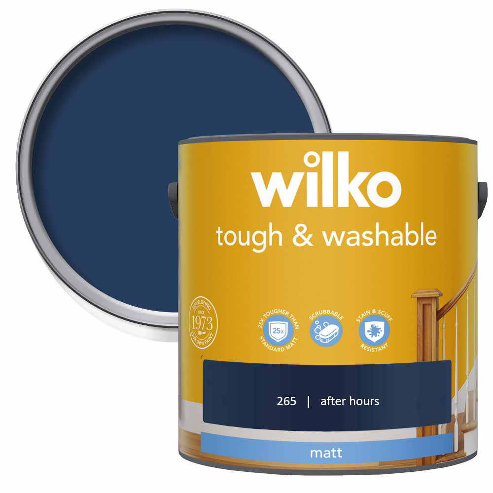 Wilko Tough and Washable Matt Emulsion Paint 2.5L is 25 x tougher than standard matt emulsion, providing an outstanding finish on walls, ceilings, wood and metal. Drying in 2 to 4 hours, this easily washable, scuff resistant paint is perfect for pet owners and busy families, allowing you to remove stubborn marks without damaging the finish. The best results always start with the best preparation. Clean walls with Wilko sugar soap. Ensure you have a smooth surface and the right rollers and brushes for the job. The contents of this can will cover approximately 30 square metres* which after 2 coats, is about the same width as 3 small sofas. (*Approximate coverage depends on the surface of your walls, see the back of can for more details). Colours viewed on screen may not show the same on your walls. To make sure this colour's right for you, we recommend ordering a tester pot or popping into store to check first.