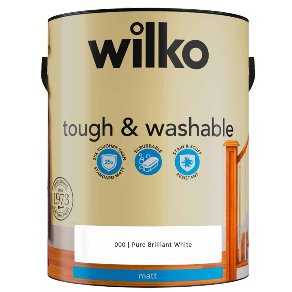 Wilko Tough and Washable Matt Emulsion Paint 5 litre is 25 x tougher than standard matt emulsion, providing an outstanding finish on walls, ceilings, wood and metal. Drying in 2 to 4 hours, this easily washable, scuff resistant paint is perfect for pet owners and busy families, allowing you to remove stubborn marks without damaging the finish. The best results always start with the best preparation. Clean walls with Wilko sugar soap. Ensure you have a smooth surface and the right rollers and brushes for the job. The contents of this can will cover approximately 60 square metres* which after 2 coats, is about the same width as 6 small sofas. (*Approximate coverage depends on the surface of your walls, see the back of can for more details).