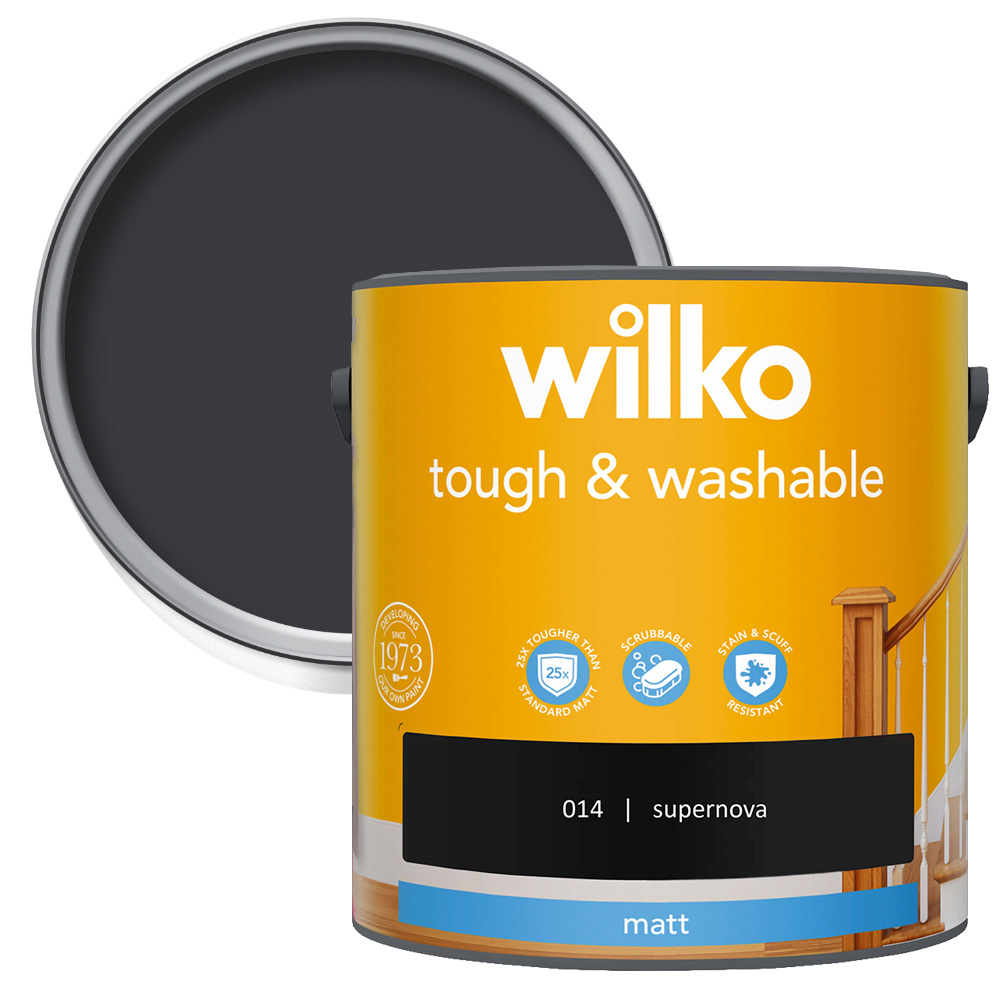 Wilko Tough & Washable Matt Emulsion Paint 2.5L is 25 x tougher than standard matt emulsion, providing an outstanding finish on walls, ceilings, wood and metal. Drying in 2 to 4 hours, this easily washable, scuff resistant paint is perfect for pet owners and busy families, allowing you to remove stubborn marks without damaging the finish. The best results always start with the best preparation. Clean walls with Wilko sugar soap. Ensure you have a smooth surface and the right rollers and brushes for the job. The contents of this can will cover approximately 30 square metres* which after 2 coats, is about the same width as 3 small sofas. (*Approximate coverage depends on the surface of your walls, see the back of can for more details). Colours viewed on screen may not show the same on your walls. To make sure this colour's right for you, we recommend ordering a tester pot or popping into store to check first.
