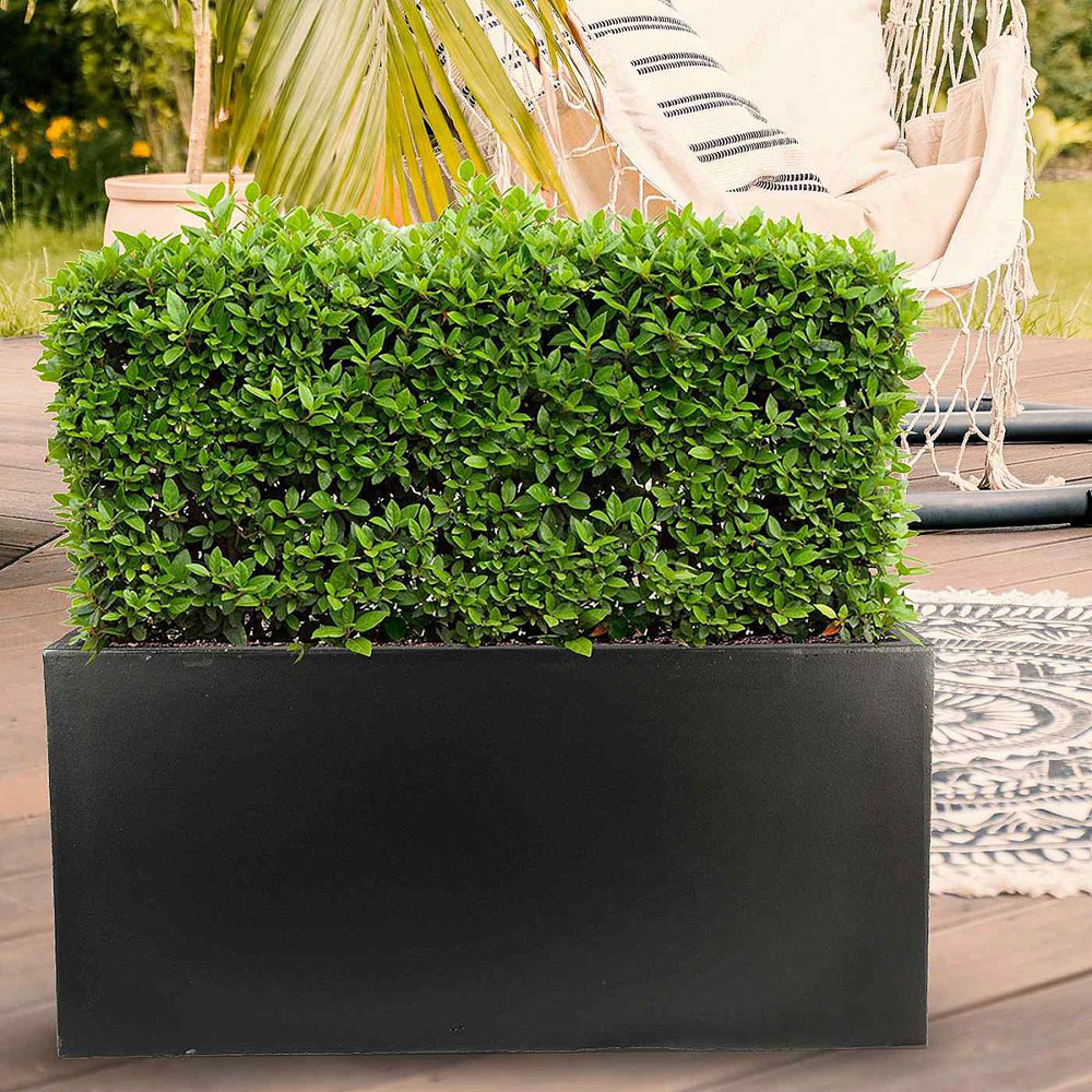 Enhance your home gardens and patio with our Trough Black Light Concrete Outdoor Planter 37.5cm. This flowerpot adds a touch of modernity to your outdoor spaces. These garden trough planters effortlessly blend into your surroundings and make a bold statement, alluring your guests. The sleek and stylish planters are crafted with trendy composite construction and state-of-the-art finishing techniques. It is made of Fiber stone, an amazing material that adds texture and style to your home. The product is a stunning, practical landscape-enhancing structure that gives the look and feel of solid stone or concrete. It combines all the advantages of fibreglass at a fraction of weight and cost. These outdoor planters are built to survive the most demanding environments. They are the perfect choice to give your plants the best possible start. The planter has pre-drilled drainage holes to prevent water retention and make sure the plants stay healthy. This H37.5xL80xW37cm, 111L statement long planter is elegant, complimenting all kinds of home and garden décor. They are the perfect gift for plant parents!