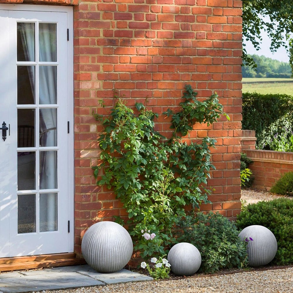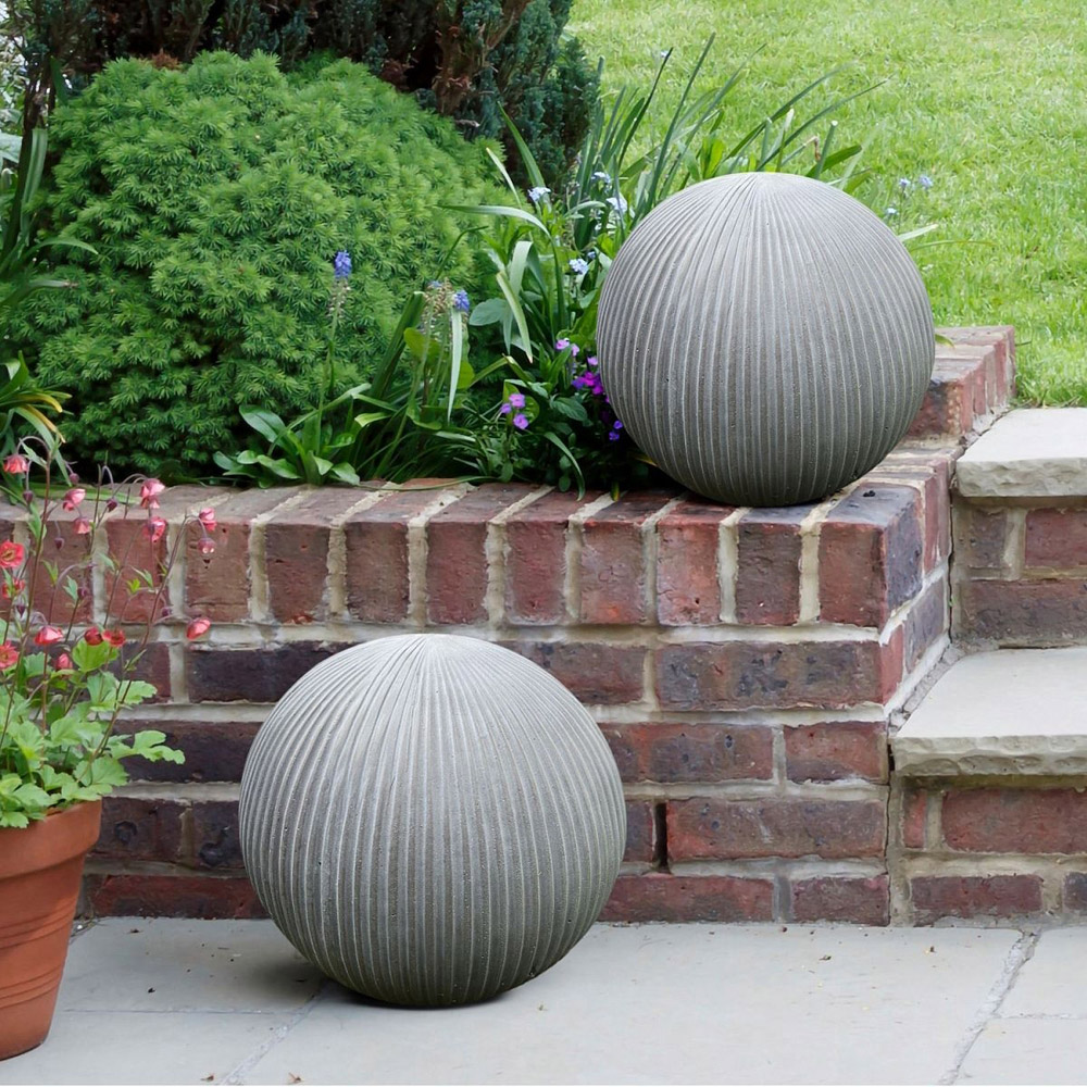 Enhance your outdoor space with our Vertical Ribbed Light Grey Outdoor Decorative Ball 22.5cm. This sphere is crafted from durable fibrestone, featuring a sophisticated vertical ribbed pattern that adds texture and visual interest to your garden or yard. With a diameter of 24.5cm, it ensures stability and resilience against weather and UV rays, ensuring long-lasting durability. The soft grey colour exudes timeless elegance, blending seamlessly with various garden styles. Ideal for Zen sand gardens, it promotes tranquility and contemplation outdoors. Frost-resistant and odour-free, this charmingly British ornament adds both styles and functionality to enhance your outdoor oasis.