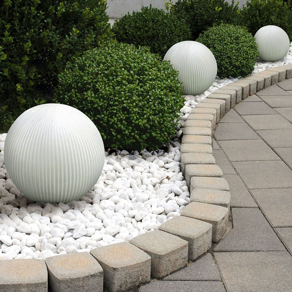 Enhance your outdoor space with our Vertical Ribbed White Outdoor Decorative Ball 29.5cm. Crafted from durable, weather and UV-resistant fibrestone, this 31.5cm diameter sphere is ideal for yards and gardens, offering strength and stability against wind and frost. Featuring a stylish vertical ribbed pattern and spherical shape, it adds texture and visual interest to any outdoor space. The crisp white color exudes elegance, blending seamlessly with various garden styles. Perfect for Zen sand gardens, it promotes a serene atmosphere outdoors. Frost-resistant and odour-free, this charmingly British ornament is a sophisticated addition to elevate your garden or patio with charm and elegance.