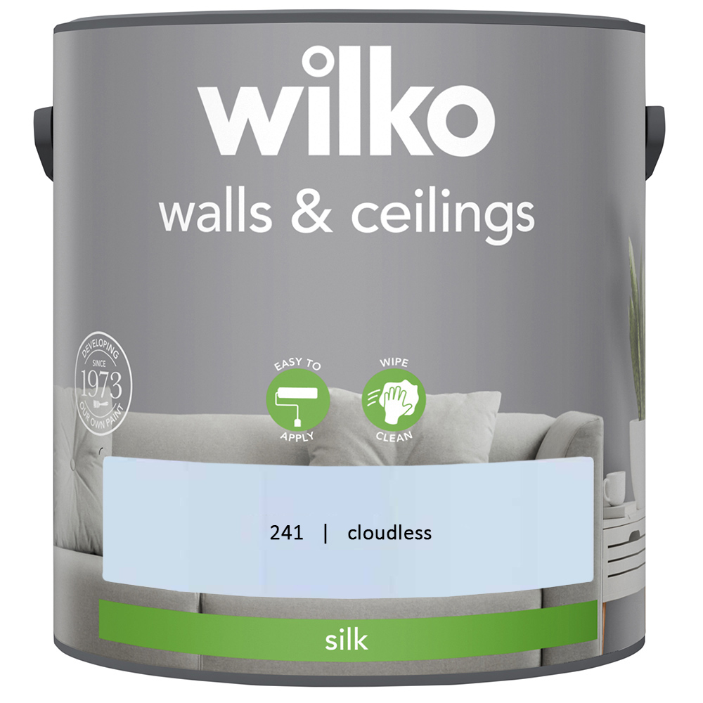 Wilko Walls & Ceilings Silk Emulsion Paint 2.5L provides a finish with a delicate shine. This stunning colour dries in just 2 to 4 hours to give a hard-wearing, wipe clean finish. These paints are perfect for enhancing texture wallpapers and in just two coats. The contents of this can will cover approximately 30 square metres* which after 2 coats, is about the same width as 3 small sofas. (*Approximate coverage depends on the surface of your walls, see the back of can for more details). Colours viewed on screen may not show the same on your walls. To make sure this colour's right for you, we recommend ordering a tester pot or popping into store to check first.