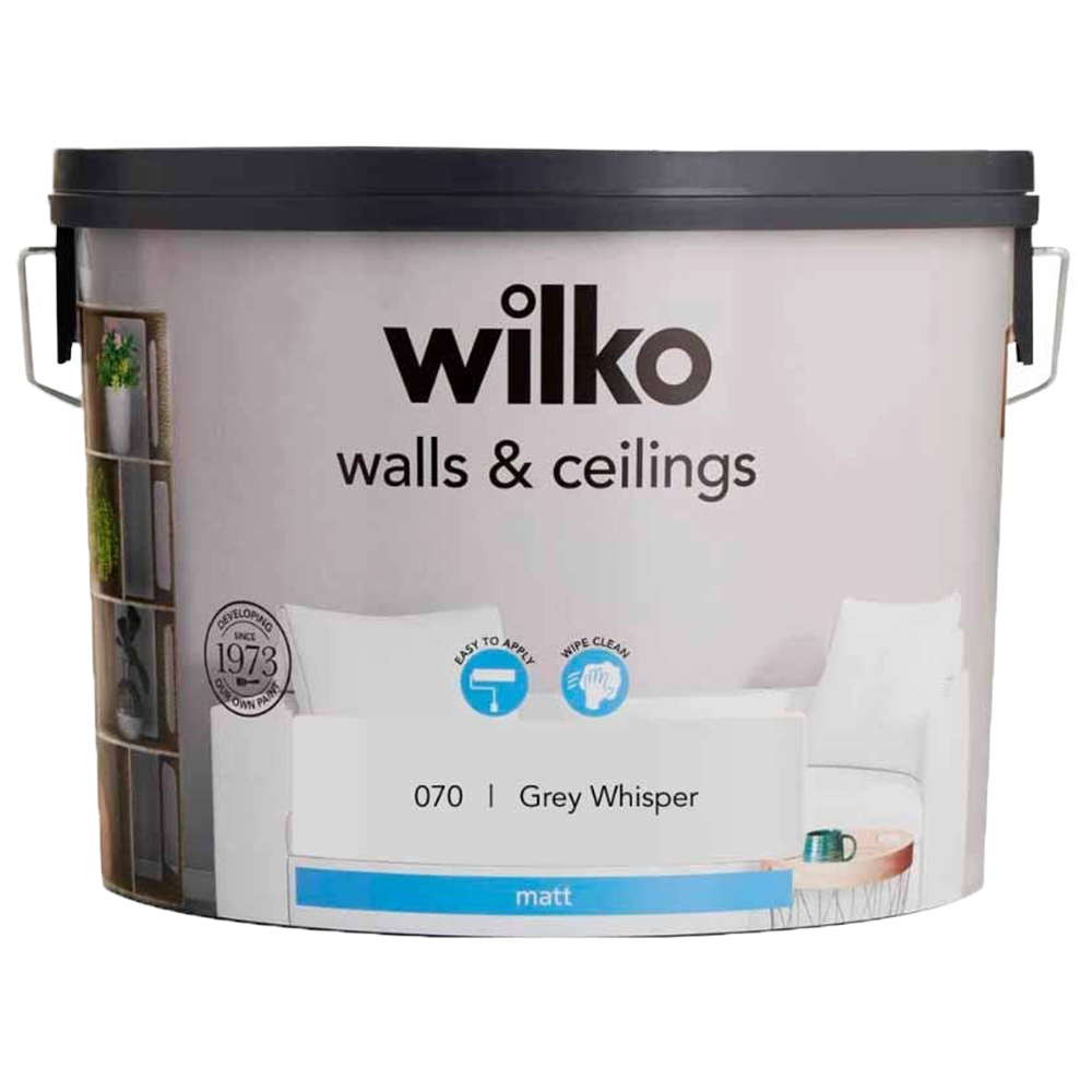 Renovate your home with our Walls and Ceilings Matt Emulsion Paint 7.5L. Our matt emulsion paint gives you that perfect finish for a modern look. This attractive colour dries in two to four hours and gives a modern, matt finish. This paint covers slight imperfections like lumps or bumps on your wall in just two coats. The contents of this can will cover approximately 105 square metres, which after two coats, is about the same width as 10 small sofas. (Approximate coverage depends on the surface of your walls, see the back of the can for more details). Colours viewed on the screen may not show the same on your walls. To make sure this colour's right for you, we recommend ordering a tester pot or popping into the store to check first. Shade: Grey Whisper.