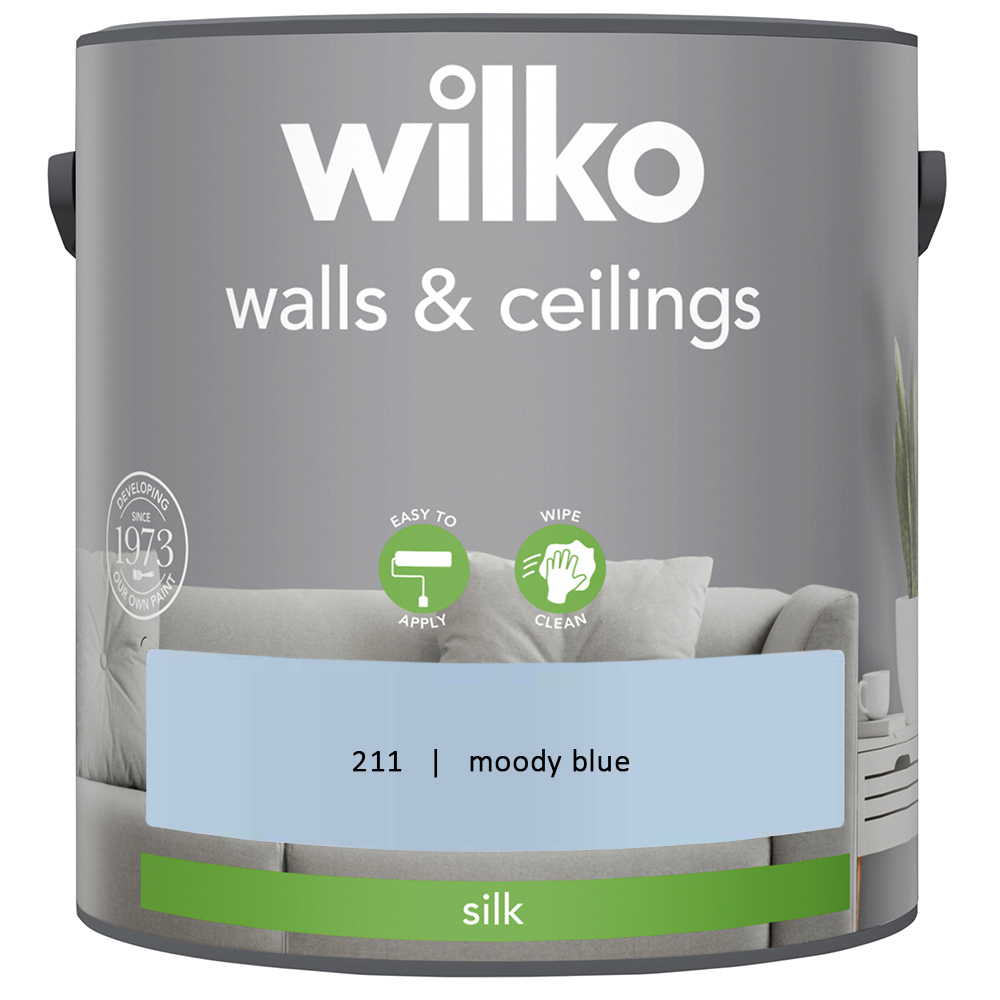 Wilko Walls & Ceilings Silk Emulsion Paint 2.5L provides a finish with a delicate shine. This stunning colour dries in just 2 to 4 hours to give a hard-wearing, wipe clean finish. These paints are perfect for enhancing texture wallpapers and in just two coats. The contents of this can will cover approximately 30 square metres* which after 2 coats, is about the same width as 3 small sofas. (*Approximate coverage depends on the surface of your walls, see the back of can for more details). Colours viewed on screen may not show the same on your walls. To make sure this colour's right for you, we recommend ordering a tester pot or popping into store to check first.