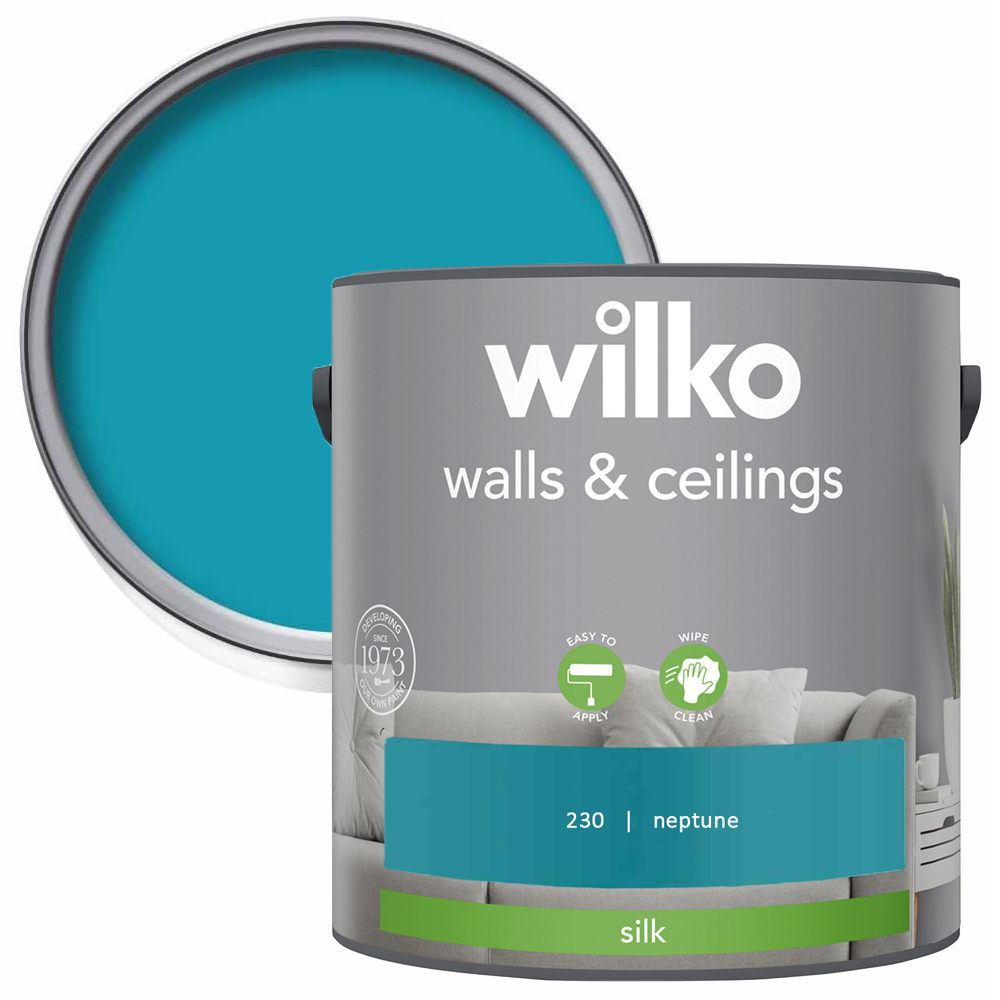 Wilko Walls & Ceilings Silk Emulsion Paint 2.5L provides a finish with a delicate shine. This stunning colour dries in just 2 to 4 hours to give a hard-wearing, wipe clean finish. These paints are perfect for enhancing texture wallpapers and in just two coats. The contents of this can will cover approximately 30 square metres* which after 2 coats, is about the same width as 3 small sofas. (*Approximate coverage depends on the surface of your walls, see the back of can for more details). Colours viewed on screen may not show the same on your walls. To make sure this colour's right for you, we recommend ordering a tester pot or popping into store to check first.