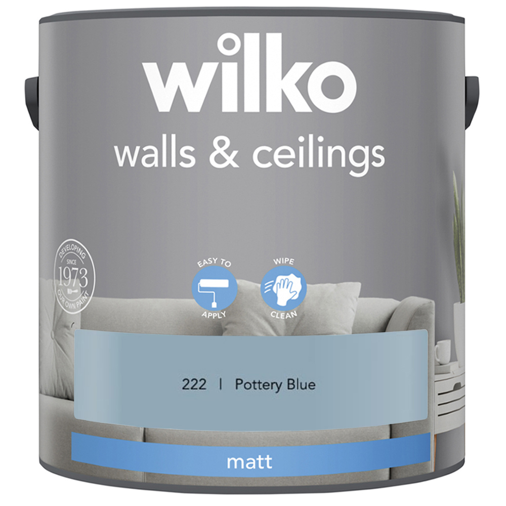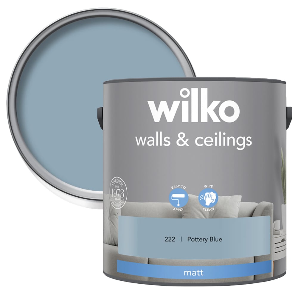 Renovate your home with our Walls and Ceilings Matt Emulsion Paint 2.5L. Our matt emulsion paint gives you that perfect finish for a modern look. This attractive colour dries in two to four hours and gives a modern, matt finish. This paint covers slight imperfections like lumps or bumps on your wall in just two coats. The contents of this can will cover approximately 35 square metres, which after two coats, is about the same width as three small sofas. (Approximate coverage depends on the surface of your walls, see the back of the can for more details). Colours viewed on the screen may not show the same on your walls. To make sure this colour's right for you, we recommend ordering a tester pot or popping into the store to check first. Shade: Pottery Blue.