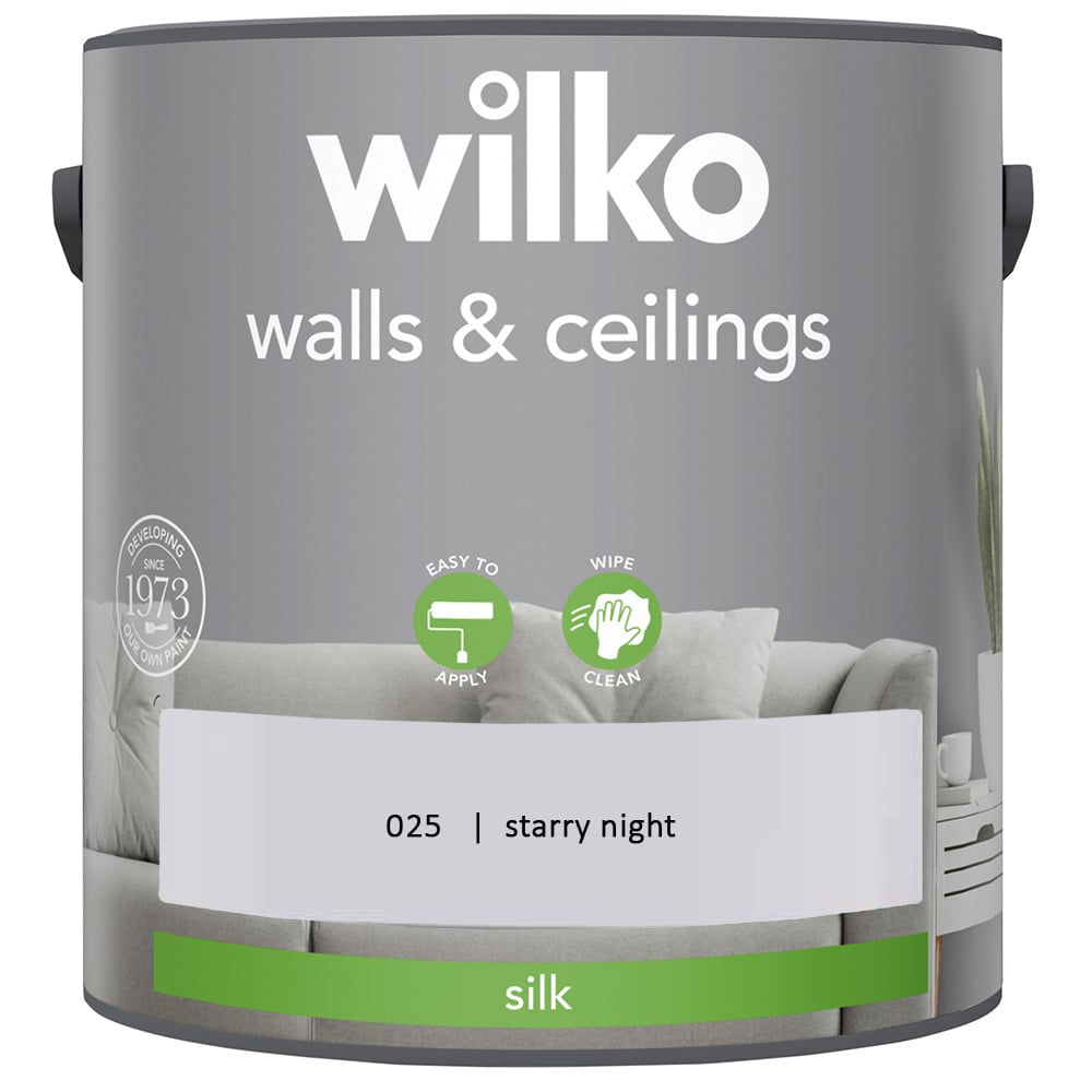 Wilko Walls and Ceilings Silk Emulsion Paint 2.5L provides a finish with a delicate shine. This stunning colour dries in just 2 to 4 hours to give a hard-wearing, wipe clean finish. These paints are perfect for enhancing texture wallpapers and in just two coats. The contents of this can will cover approximately 30 square metres* which after 2 coats, is about the same width as 3 small sofas. (*Approximate coverage depends on the surface of your walls, see the back of can for more details). Colours viewed on screen may not show the same on your walls. To make sure this colour's right for you, we recommend ordering a tester pot or popping into store to check first.