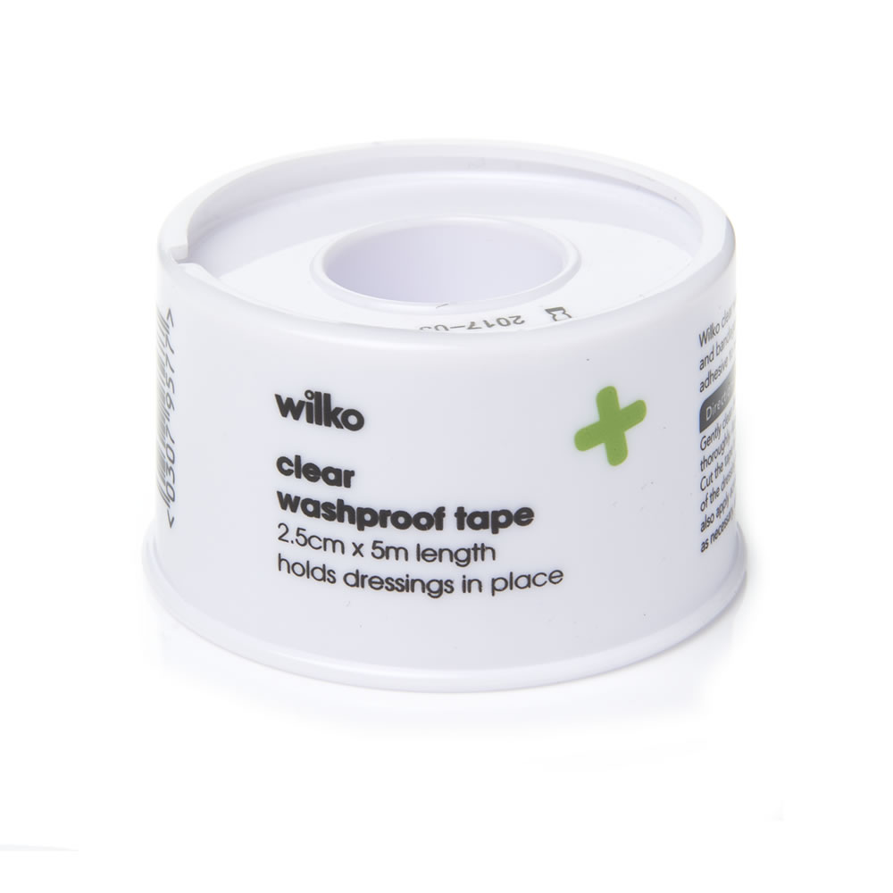 Our clear washproof tape is ideal for holding dressings and bandages in place. The tape has a low allergy adhesive to reduce the risk of allergic reaction. The tape measures 2.5cm x 5m in length.This tape has a low allergy adhesive to reduce the risk of an allergic reaction. Always read instructions.