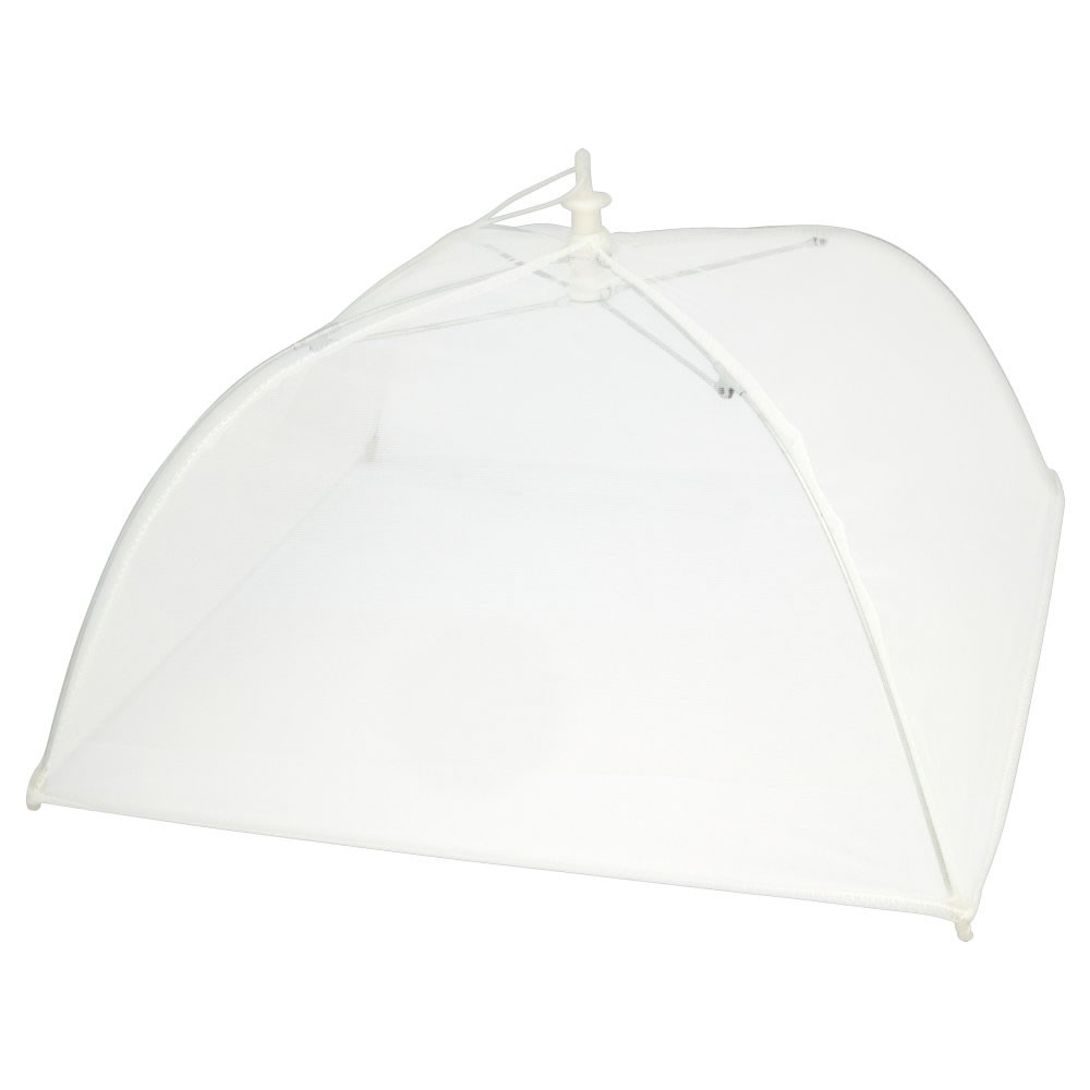 White food cover. Just the gadget to help make life that little bit easier. When fully extended the size is approximately 10 inches high and 14 inches wide.