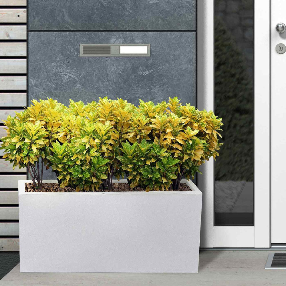 Transform your green space with our White Light Concrete Fibrestone Trough Outdoor Plant Pot 40cm. With a 40L capacity, it provides ample space for various houseplants while adding a touch of elegance to your house entrance or garden. Crafted from fibrestone using state-of-the-art finishing techniques, this sleek and stylish planter combines the look and solid feel of solid stone or concrete with the lightweight, cost-effective benefits of fibreglass. Its durable construction ensures it can withstand the most demanding environments. Designed with pre-drilled drainage holes to prevent water retention, this planter promotes healthy plant growth. This planter is frost-proof, ensuring it remains robust and reliable all year round. Its simple elegance complements a wide range of home and garden décor, making it perfect for gift for any gardening enthusiast. Size: H40 x W20 x L50cm.