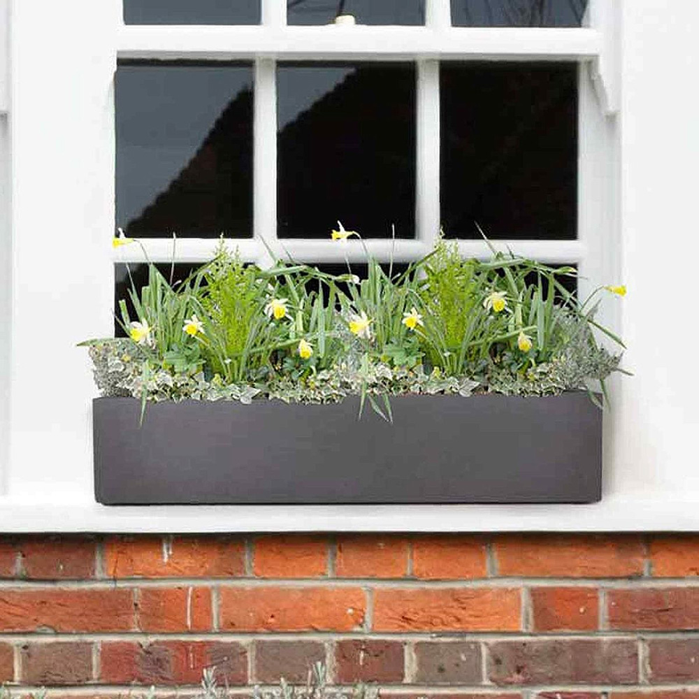 wilko Window Flower Box Dark Grey Light Concrete Outdoor Planter 80cm