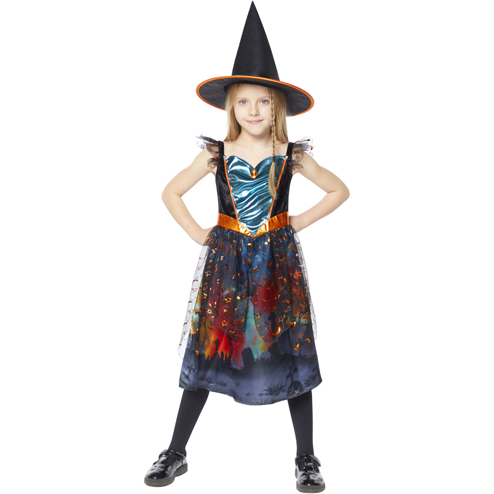 Cast a spell of enchantment with our Witch Costume. Specially tailored for ages nine to 10 years and height up to 140cm includes a dress and a hat. Care and use: Materials: 100% polyester, exclusive of trims. Sponge clean only. Do not bleach. Do not iron. Do not tumble dry. Do not dry clean.