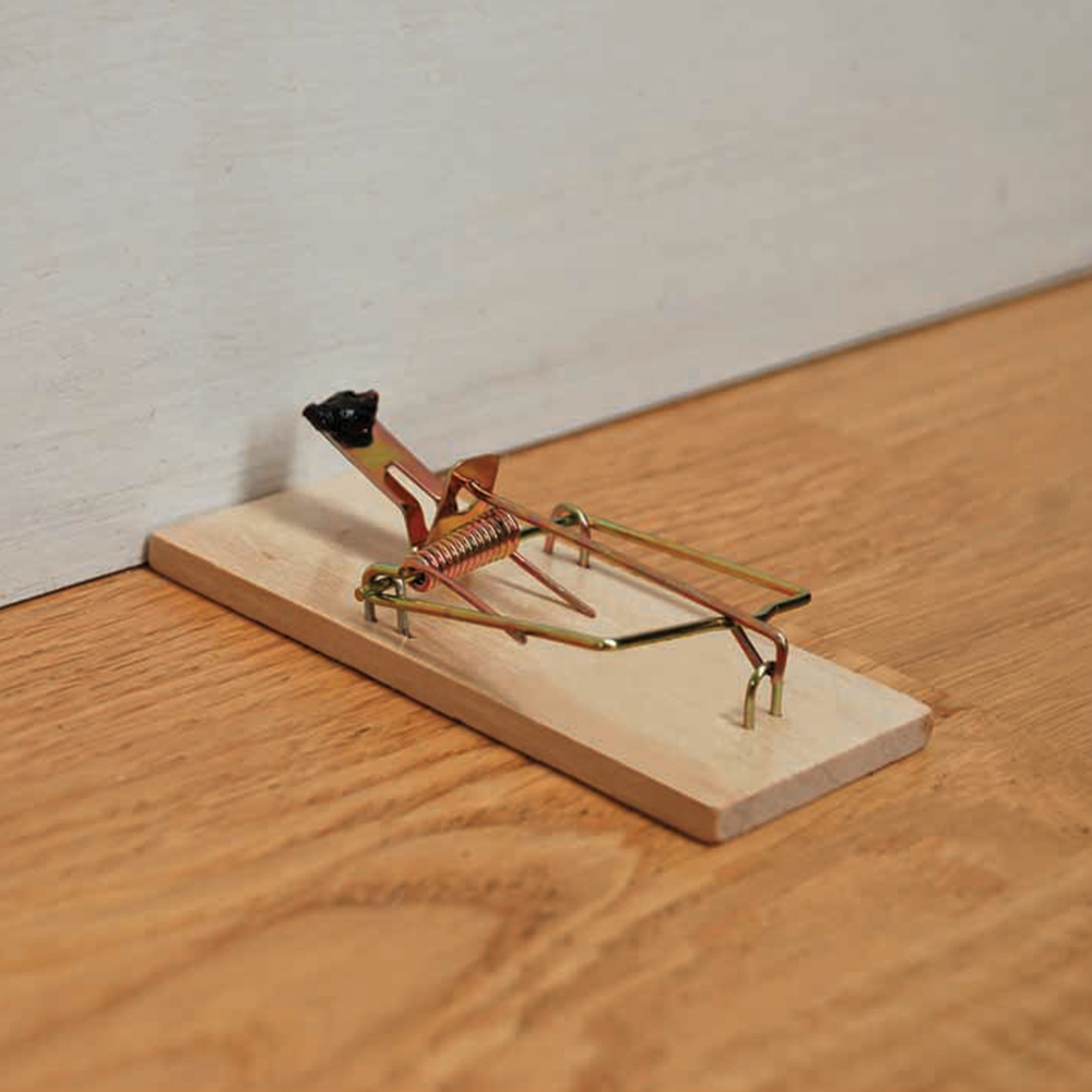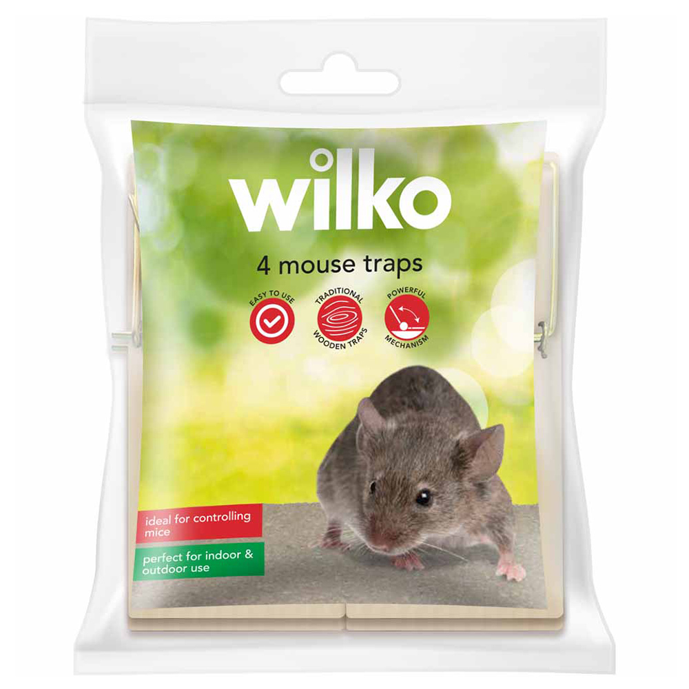 Our pack of 4 mouse traps are traditional wooden traps with a powerful spring mechanism. Suitable for indoor and outdoor use, it is ideal for controlling mice with paste-based baits like peanut butter or jam. Directions for use: Apply a food paste bait such as peanut butter to the bait pedal. Move the arm bar away from the bait pedal and hang it off the back of the trap. Firmly holding the platform pull up and over the kill bar away from the bait pedal and hold in position with your thumb. The kill bar should now be under tension. Move the arm bar to lock in place the kill bar, the kill bar is secured by hooking into the hole on the bait pedal. The trap is now set. Use multiple traps in severely affected areas. Mice live in groups and traps placed two-three meters apart will ensure the maximum catch. Block holes and passageways to force mice into the area where traps are sited. Protect traps in outdoor areas by placing them beneath the cover of a lean-to board.