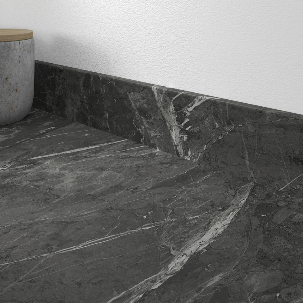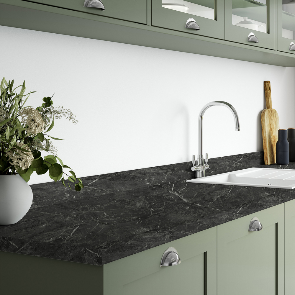 Designed to look and feel like real stone, the Marmo Nero breakfast bar combines the striking dark grey and white veining of marble with the all the benefits of a laminate worktop. Easy to install and maintain, with a softly curved edge for a classic finish. The soft matt grey and black tones adds a touch of luxury to your scheme.