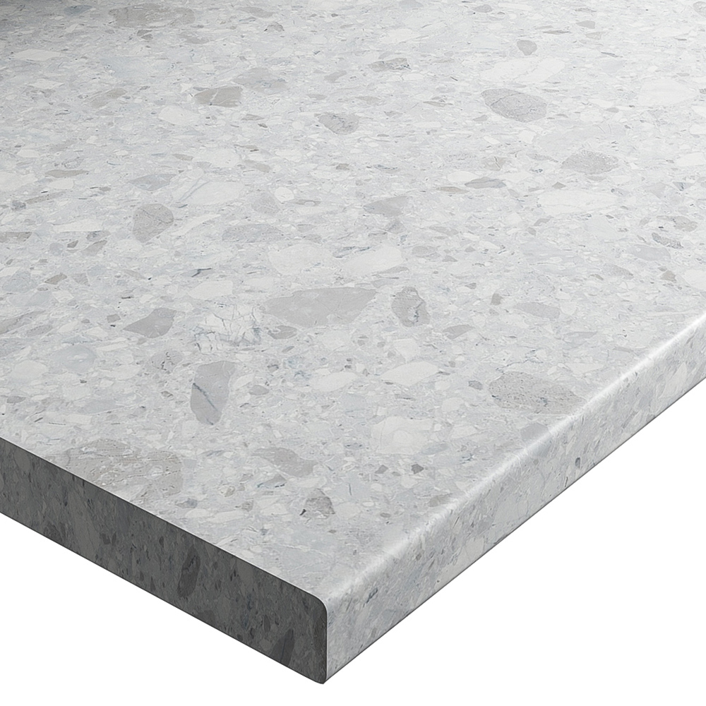 Designed to look and feel like real stone, the Nuvolento worktop combines the speckles and natural colour flecks of terrazzo with the all the benefits of a laminate worktop. Easy to install and maintain, with a softly rounded edge for a classic finish. The combination of soft matt grey tones adds a touch of modern sophistication to your scheme.