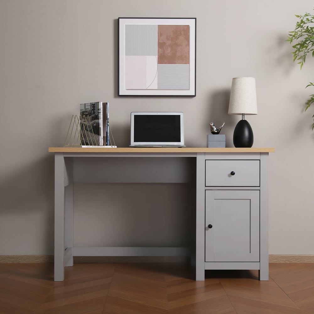 Introducing the Wiltshire storage desk, a versatile and elegant furniture piece meticulously crafted to elevate productivity and organization in any workspace. Crafted from high-quality MDF melamine, this office desk showcases a sophisticated grey finish complemented by a wood-coloured top. The intelligently designed desk with drawers offers abundant storage opportunities, making it perfect for maintaining an orderly and efficient workspace. Ideal for both work and study, the Wiltshire storage desk seamlessly merges functionality with visual appeal. The expansive surface of this study desk provides ample space for a computer, books, and various study materials. Whether utilised as a primary workstation or a dedicated study desk, the Wiltshire office desk delivers a pragmatic and visually appealing solution.