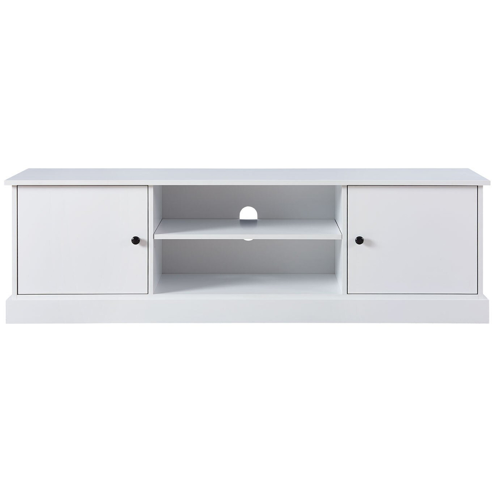 Designed to complement any existing living room environment, the Windsor TV Unit is sure to help ensure your TV takes pride of place. This durable unit is perfect for those looking to accentuate their home with a touch of elegance and class. Featuring built-in cupboards for plenty of storage space, this TV unit also includes an adjustable shelf for your convenience and a handy cut-out section to keep your wries neat and organised. Perfect for coordinating with a variety of home decor designs thanks to the white colour scheme, this TV unit is as stylish as it is practical.