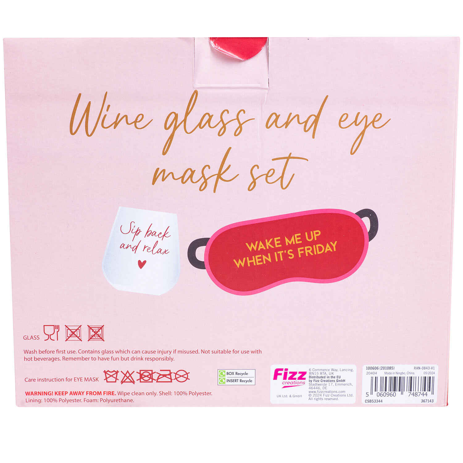 Unwind in style with this Wine Glass and Eye Mask Set. Unique in every way, the set consists of a stemless wine glass and a soft eye mask. It's perfect for those evenings dedicated to self-care, or a great gift for family and friends.