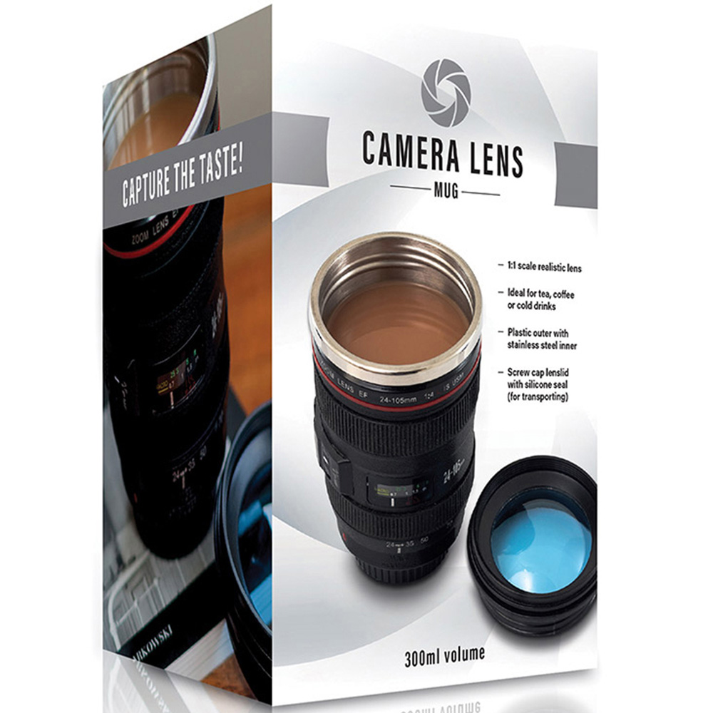 Enjoy a unique travel mug with this #winning Camera Lens Mug with Lid. It flaunts a realistic, full-sized camera lens with incredible details and intricate features. The mug features a multipurpose screw-on lid to keep all your hot drinks hot making it perfect for travel. With a 300ml capacity, it's ideal for holding tea, coffee and cold drinks.